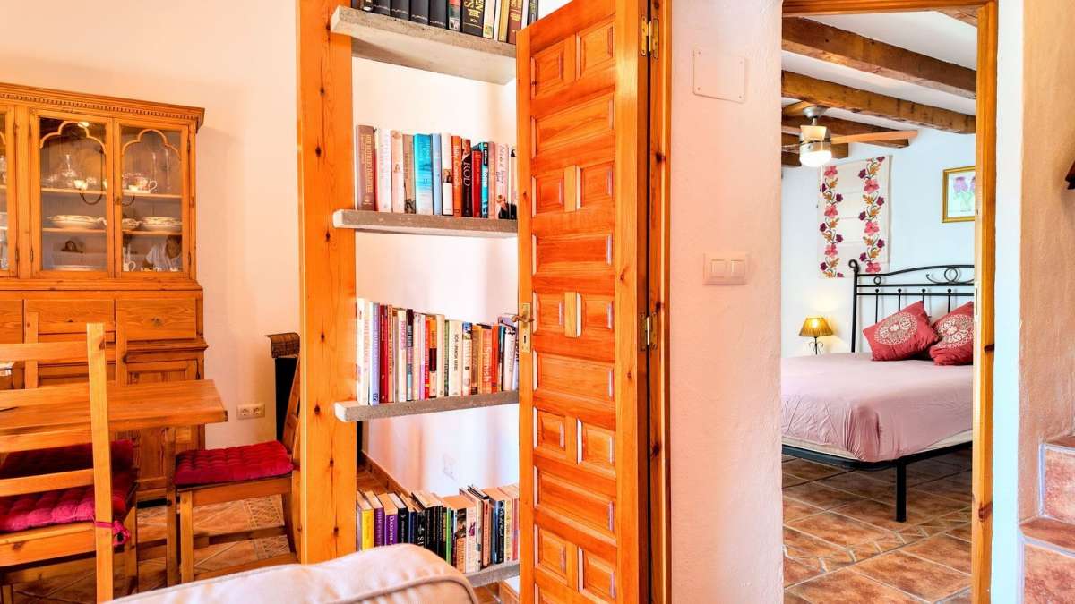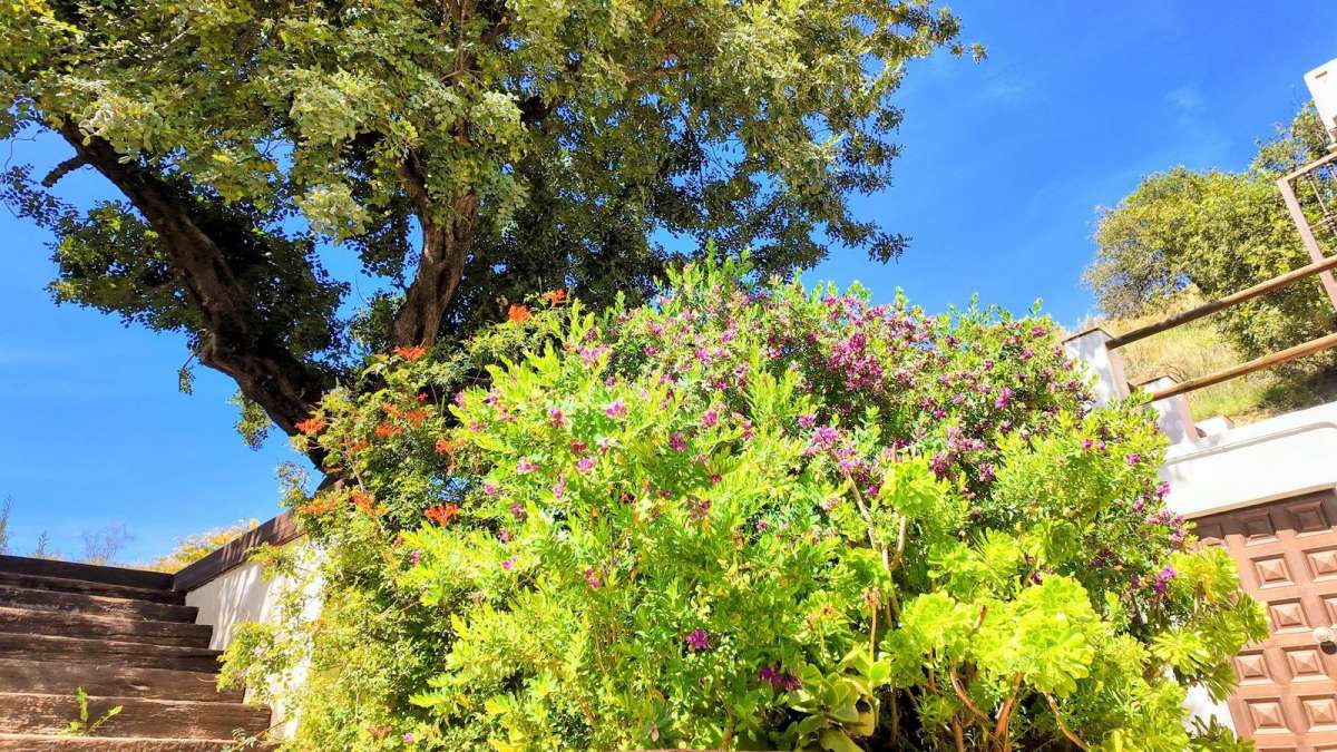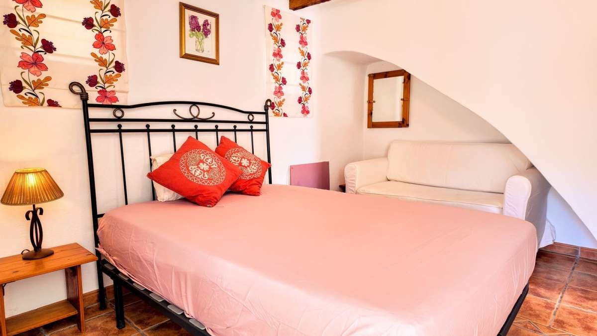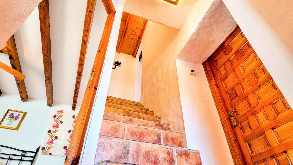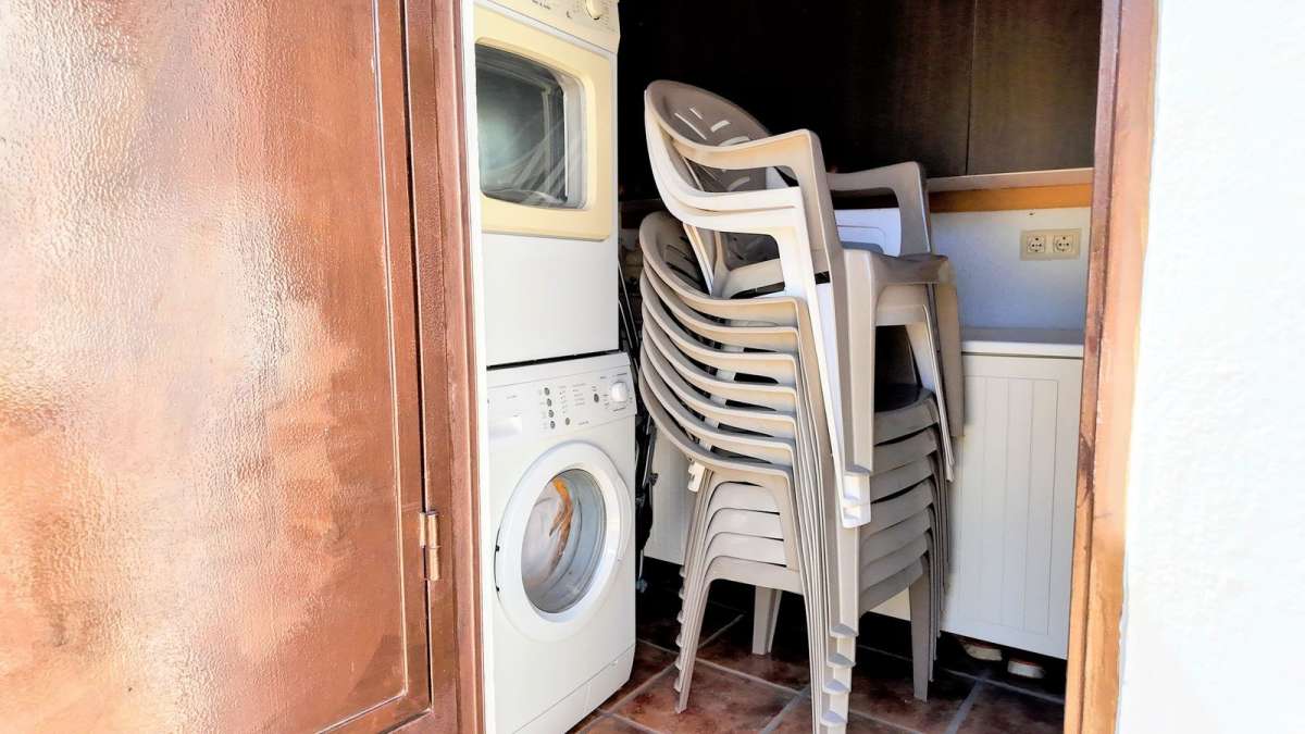 Upstairs, two additional bedrooms each have their own terraces, offering beautiful views of the valley and the pool area. The second bedroom has direct views of the pool. Additionally, there's a laundry room and a storage area for extra convenience.