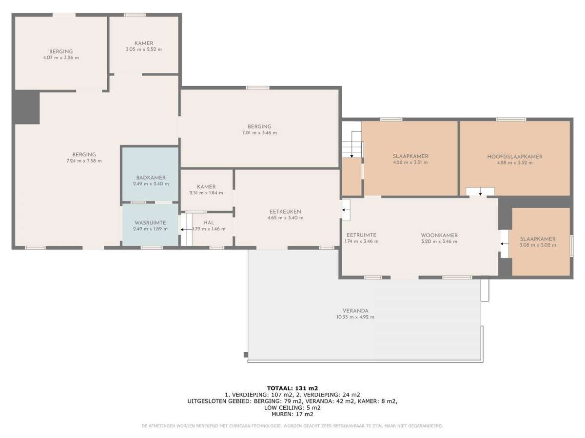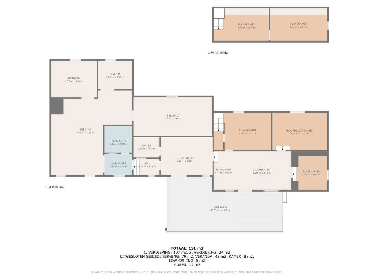 • Main house: Traditional home with kitchen, cozy living room, 5 bedrooms and bathroom (131m²)