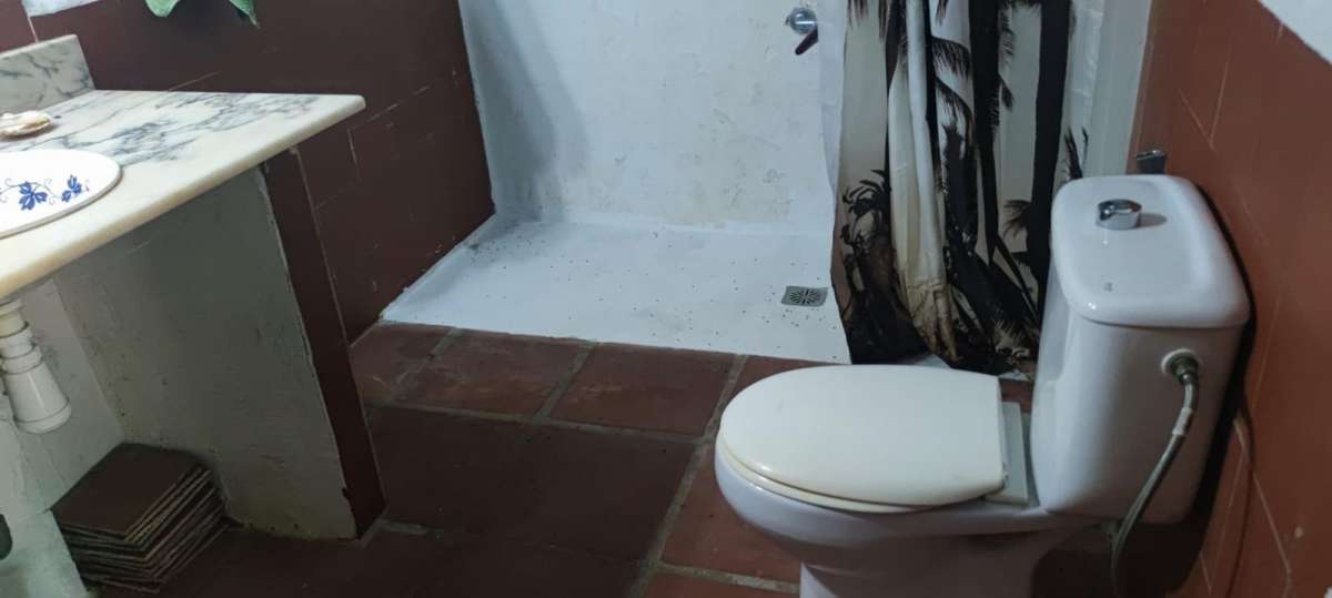 A second bedroom is 16.50 m2 with rustic clay tile floors.