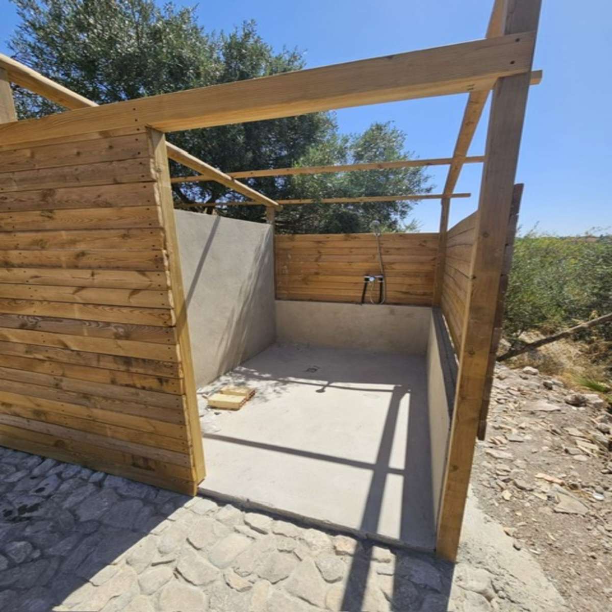 Then walk 20 meters and you will find a fenced plot. The land is almost entirely flat and has a space prepared for caravan parking. There is a shower and a toilet on the same plot for new owners who want to take advantage of an extra income. The plot measures no less than 18,000 m2 and has 80 Hojiblanca olive trees actively producing extra virgin olive oil.