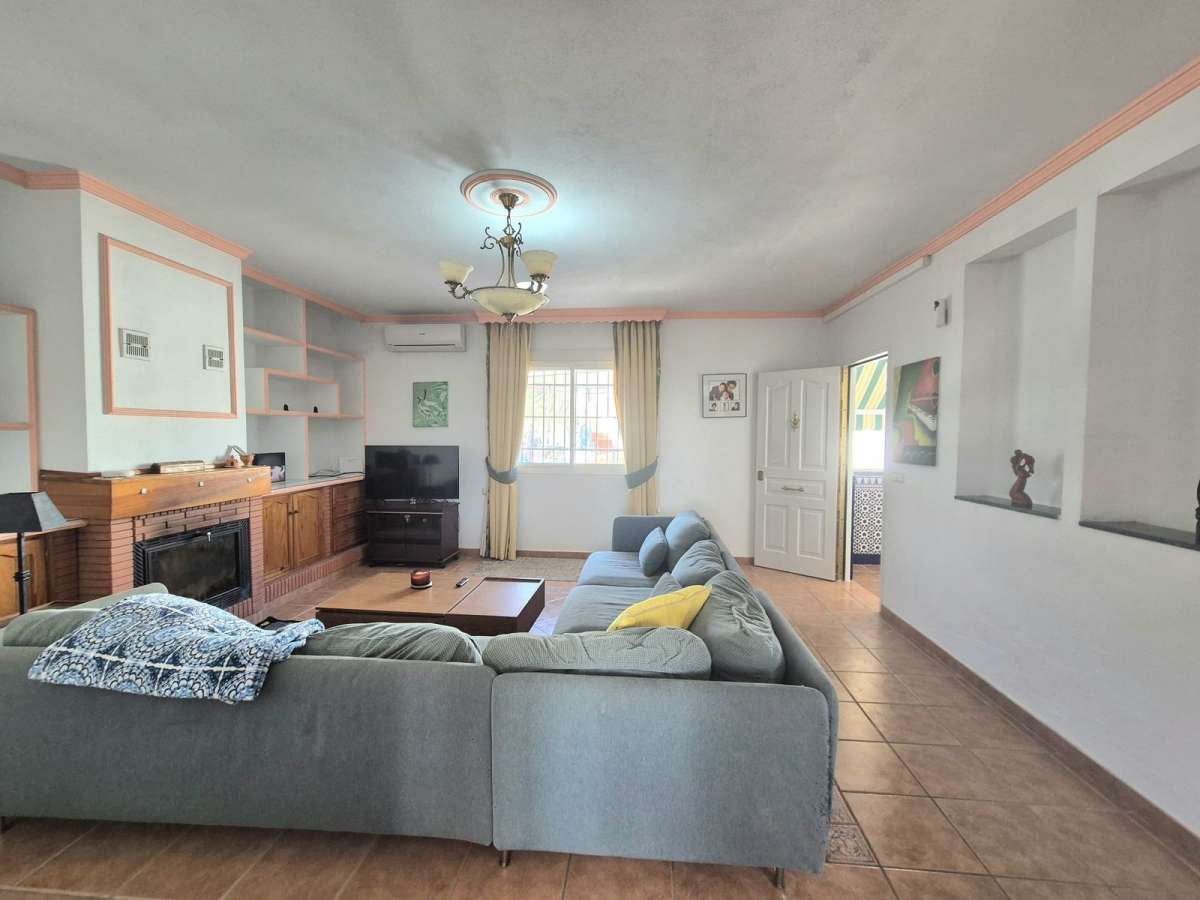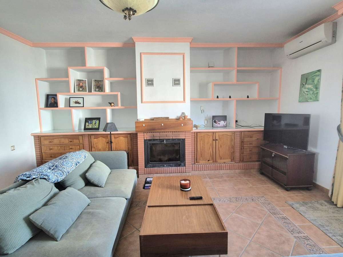 Through the main entrance you have a mudroom / wardrobe where you have space for coats and shoes, to the left you have the first of two living rooms, next to here you have the fully fitted kitchen, with access to a hallway and outside, to the right of the entrance you have 3 bedrooms and a bathroom. Back into the kitchen along the hallway there is the second large living room with fireplace and 2 bedrooms and a bathroom. This living room and one of the bedrooms has air conditioning. There is solar system water heating.