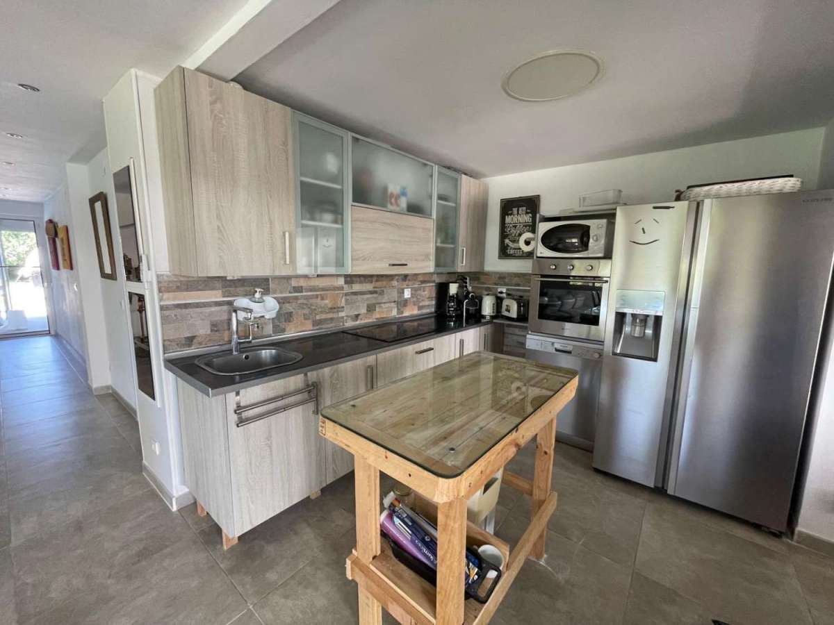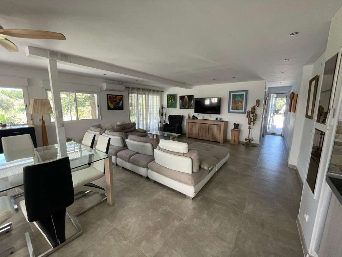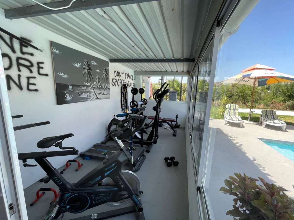 The villa consists of a spacious and bright living-dining room with a fully furnished open-plan kitchen, 4 double bedrooms, 3 bathrooms, several terraces, as well as a covered BBQ area and a splendid saltwater pool. The villa has a gym, a chill-out terrace, a laundry room, air conditioning throughout the house, double-glazed windows, an automatic gate, and a fully renovated house with high-end materials, several parking spaces are available on the plot. The apartment has its own separate entrance, providing more privacy if you want to rent it out. It consists of a living room, kitchen, one bedroom, and a bathroom, as well as a small enclosed patio. The entire property is supplied with electricity via 16 solar panels with a power output of 8.8 kW/h, in addition to mains electricity. The water supply is from a community well. The property has a 10,000-liter water cistern and three 1,000-liter tanks.