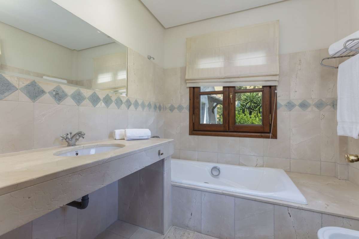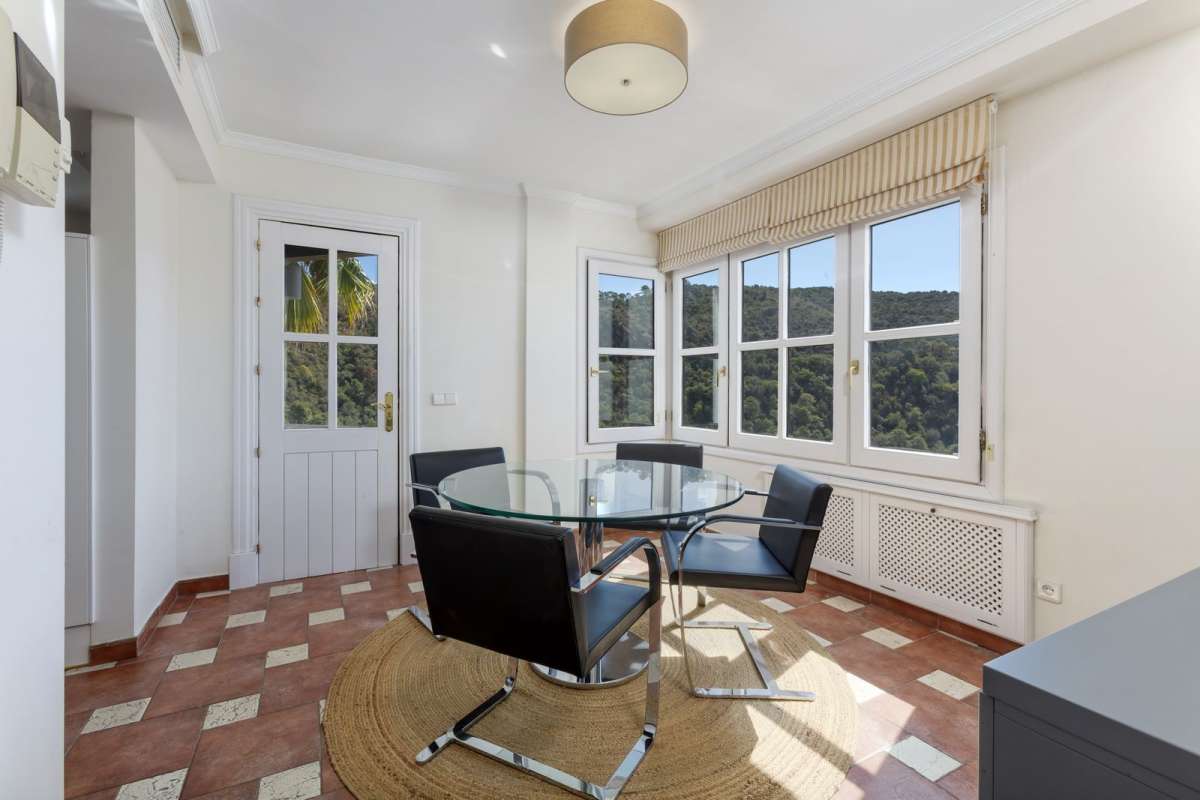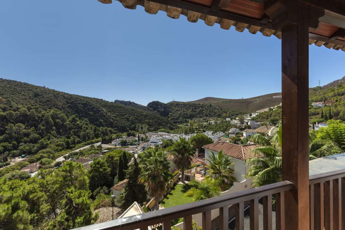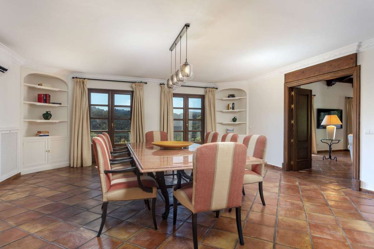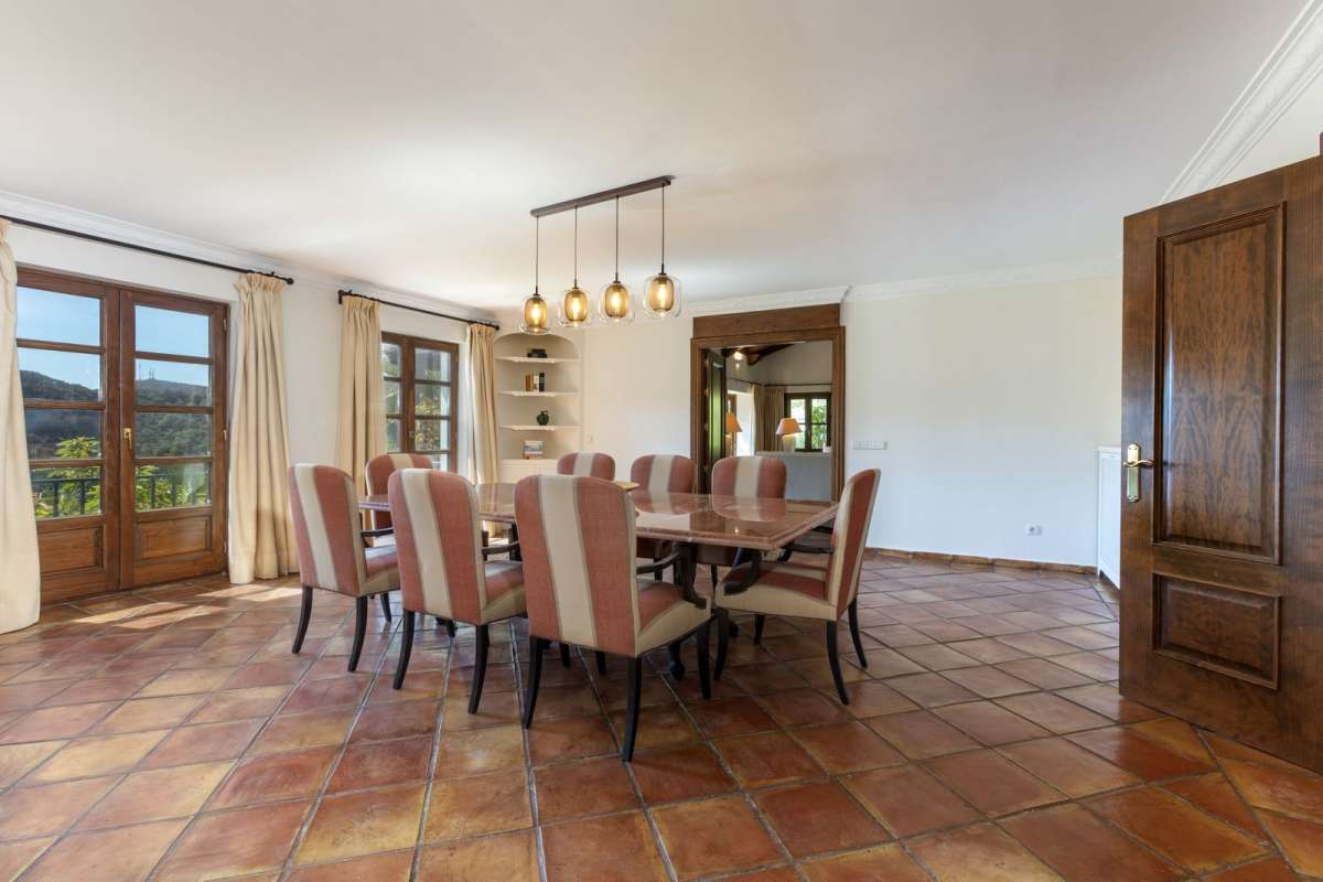 Electric gates lead you into the driveway which has parking for several cars and also a double garage. There is a utility room plus large kitchen that opens up into the breakfast room. huge dining room which leads into the impressive sitting room with high beamed ceilings and cosy fireplace - perfect for winter evenings. Opening up from the sitting room is a huge terrace and garden area with large pool which is heated - Ideal for all lovers of swimming on a winters day! The garden offers total privacy and total panoramic views accross the valley and village and to the protected forest areas and super exclusive La Zagaleta.