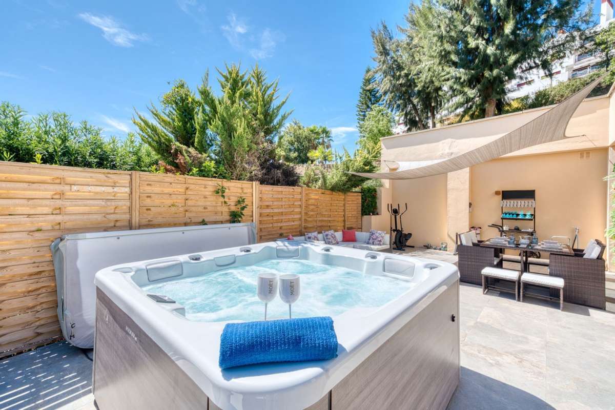 Set within a secure private community in Benahavís, this detached villa enjoys peaceful surroundings, open countryside views and excellent connections. Marbella’s vibrant centre and Puerto Banús are only minutes away, with Estepona reached in under 15 minutes. Designed for both full-time living and holidays, the villa features an open plan lounge and dining area with a working fireplace, a brand new fitted kitchen and a separate utility room. Sliding doors from the living space lead onto a covered terrace, the perfect spot for outdoor dining, entertaining or relaxing in the private Jacuzzi.