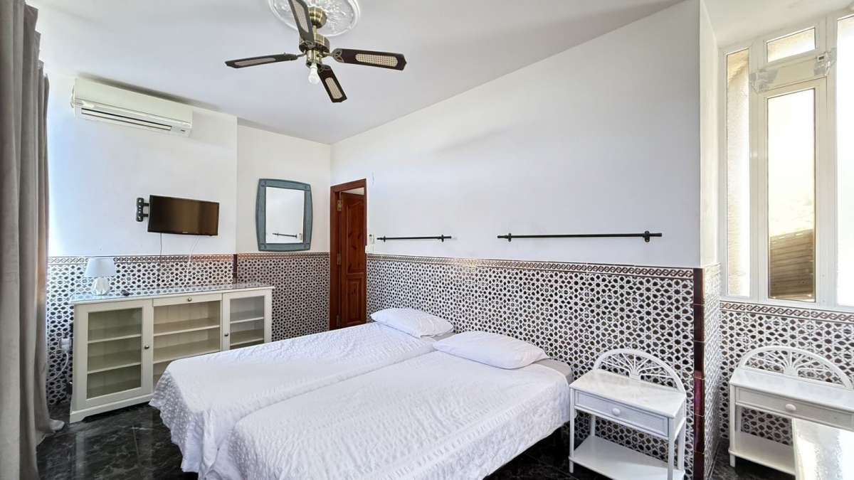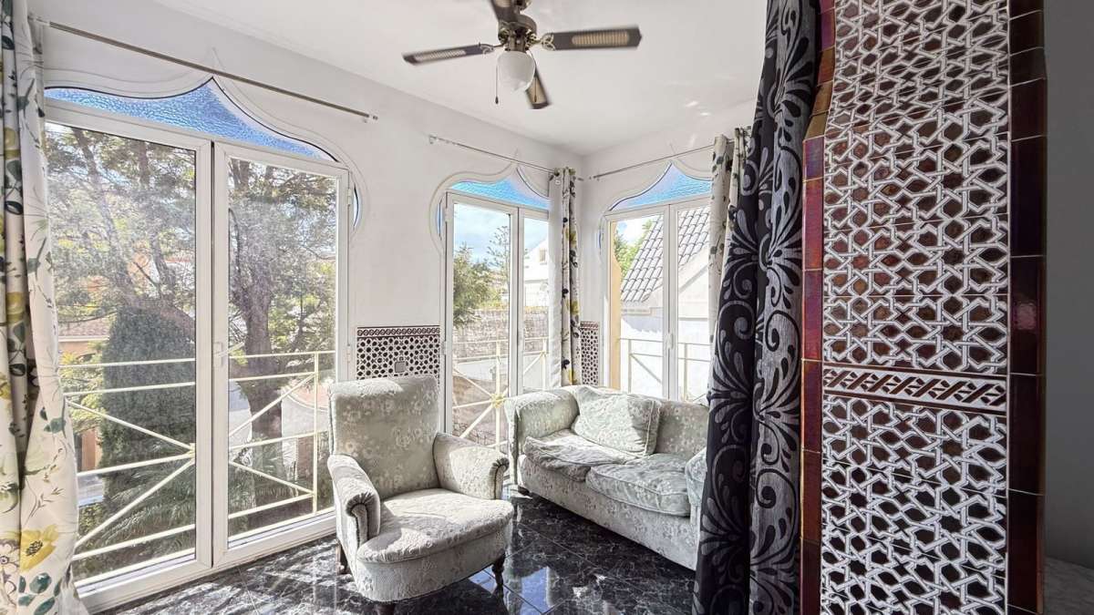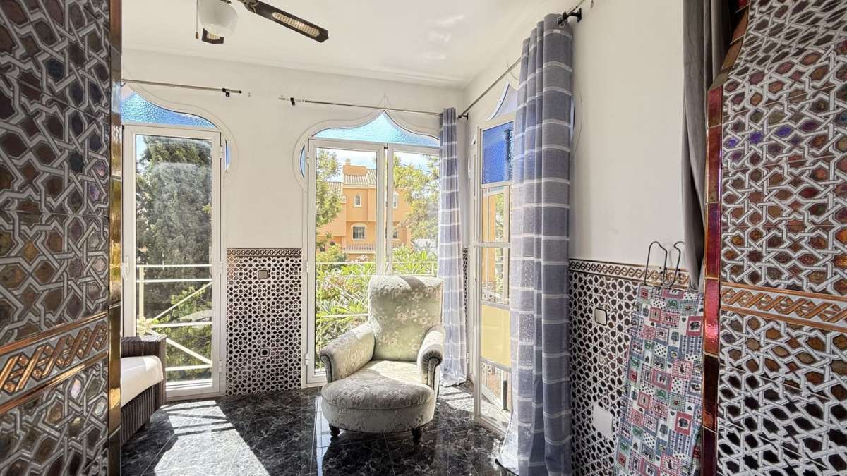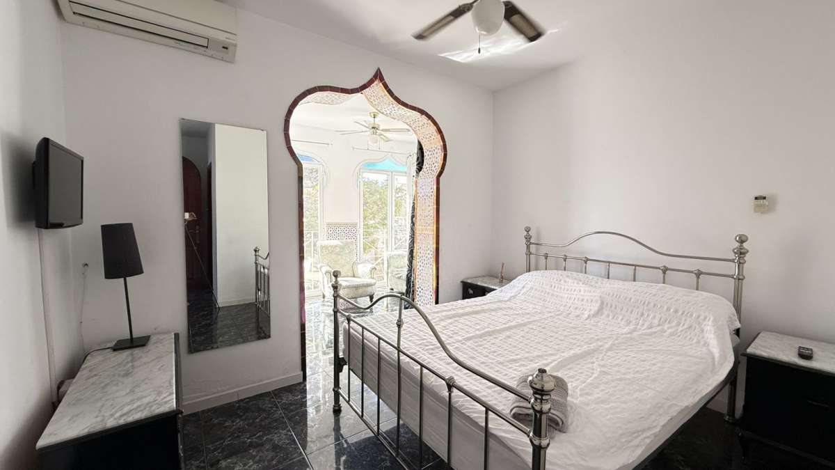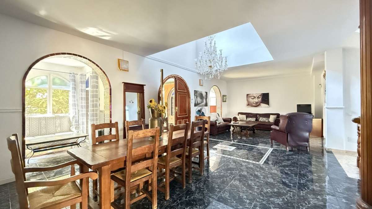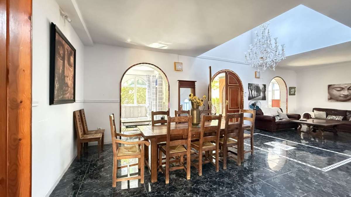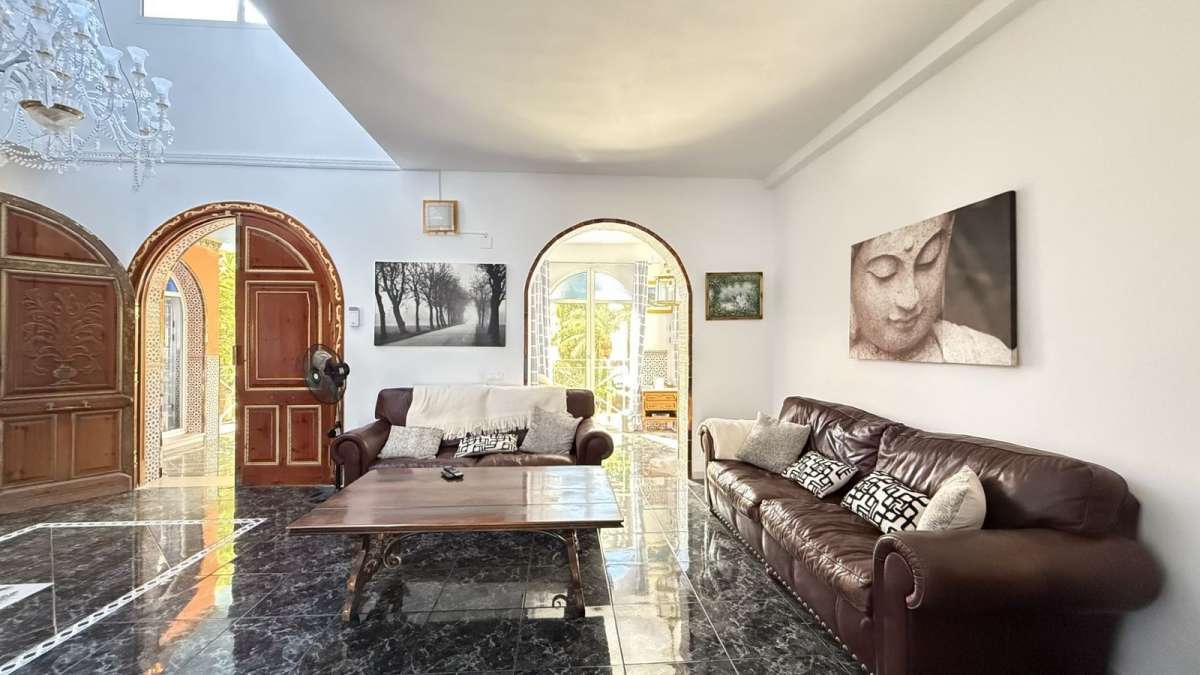 Unique Moroccan-Style Villa with Charm, Space & Character. A truly rare opportunity to own a one-of-a-kind Moroccan-style villa, beautifully renovated (except the kitchen) with meticulous attention to detail while preserving its authentic charm. Located within walking distance to all amenities, this spacious property offers both timeless elegance and modern comfort. The villa features 5 generous double bedrooms and 4.5 bathrooms, with two of the bedrooms enjoying attached rooms ideal for a home office or study. The top two bedrooms are exceptionally large, perfect as private retreats. There is a private swimming pool, mature fruit trees. Inside, the air-conditioned villa includes a basement entertainment level with a home cinema, pool table, and table tennis area. While the kitchen awaits a personal touch, the rest of the home has been recently renovated to a high standard. The property also includes a private garage and holds a tourist rental license, adding investment potential to its unique lifestyle offering. A truly special home full of personality, space, and style ready to be enjoyed as a private residence or luxury holiday retreat or rentals.