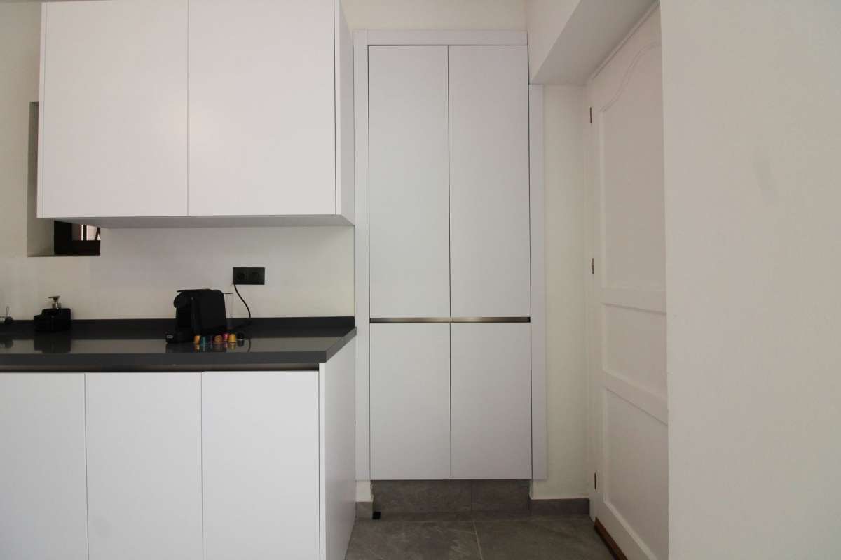 Distributed on a single level, the villa features three spacious bedrooms, all with en-suite bathrooms, a generous living-dining room, a fully equipped kitchen, a private garage, and a garden with an outdoor pool. Several rooms enjoy open views of the mountains.