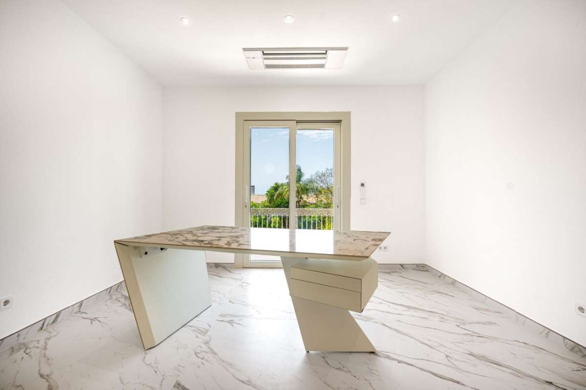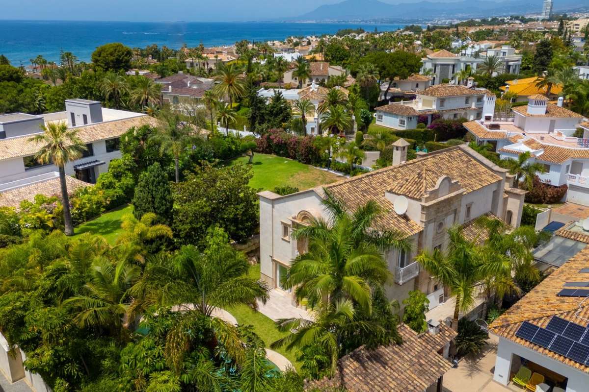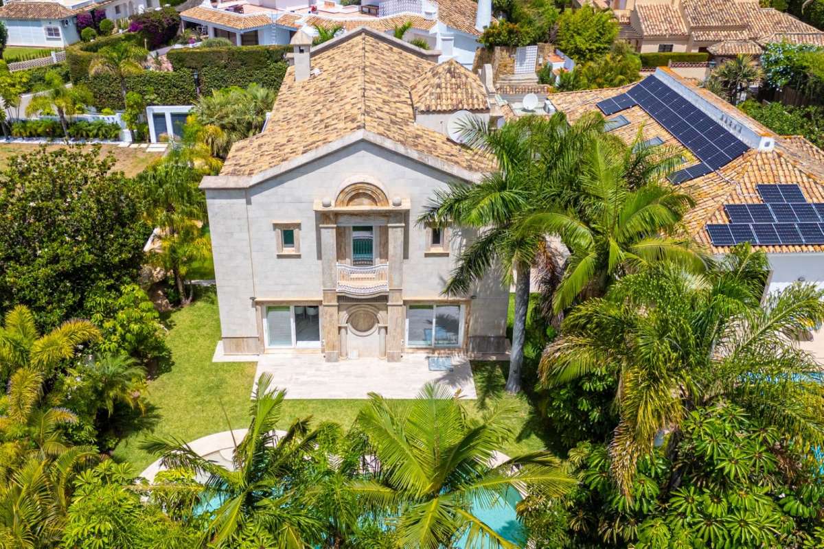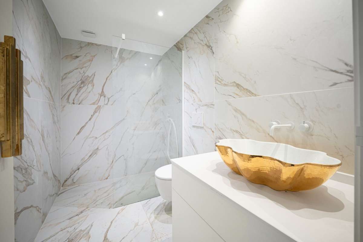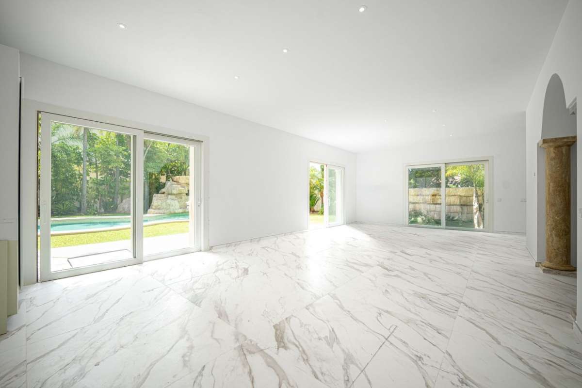 Tucked away in the exclusive beachside area of Los Monteros in Marbella East, just a short walk from the beach, this villa is truly one of a kind. Inspired by Venetian church architecture, it combines timeless European elegance with relaxed coastal living. Set on a generous 933 square metre plot, the four-bedroom, four-bathroom home—including two en-suites—is spread across three levels, offering a unique blend of style, comfort, and space. A grand entrance welcomes you with elegant pillars, arched doorways, and polished marble floors that run throughout the house, setting the tone for what’s to come.