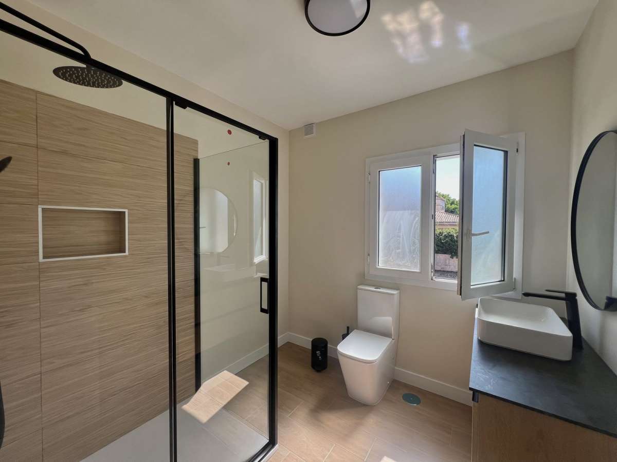 The property has been completely renovated and is spread over two floors. It offers a bright living room with double-height ceilings and a fireplace, a modern kitchen with access to the garden, and well-connected spaces that invite you to enjoy both the interior and exterior.