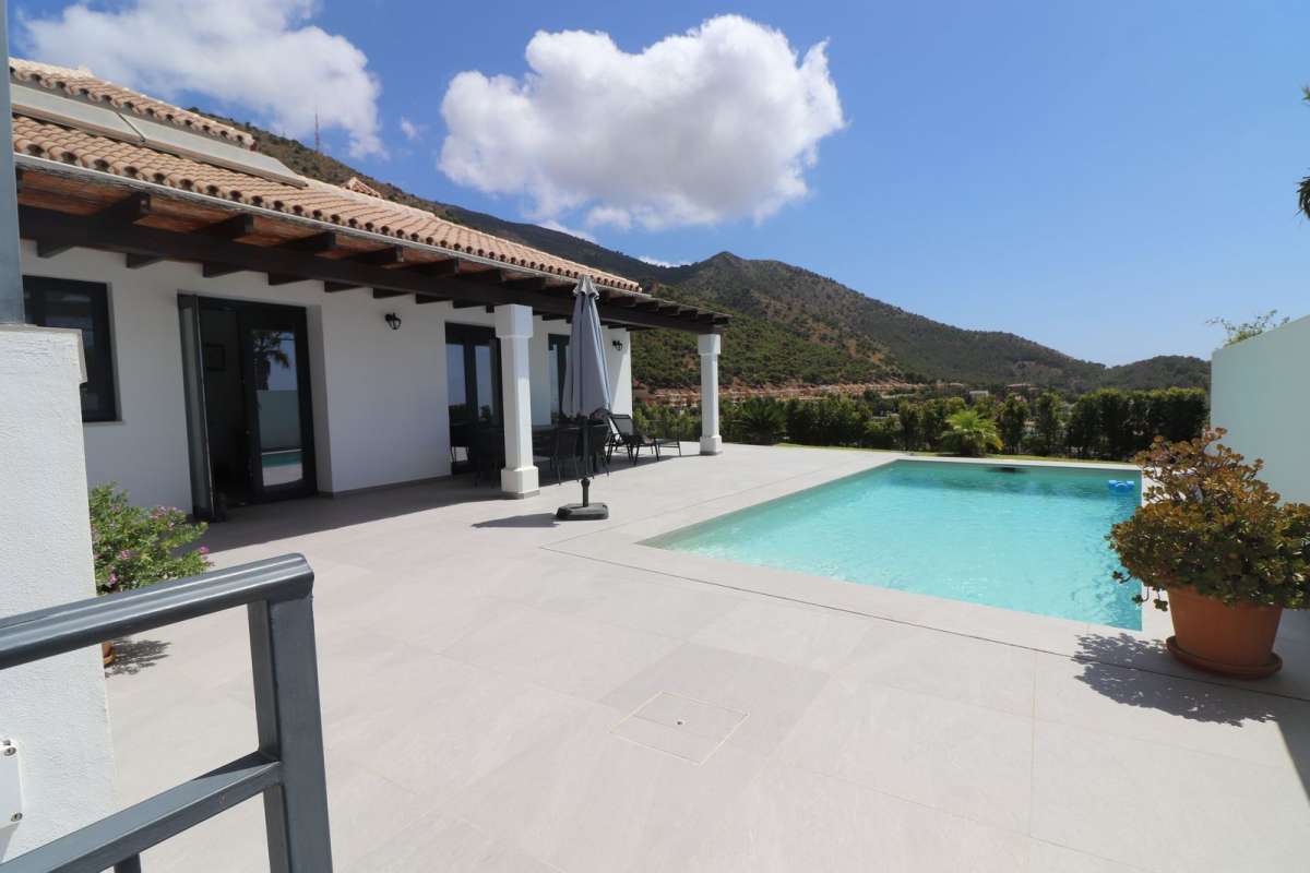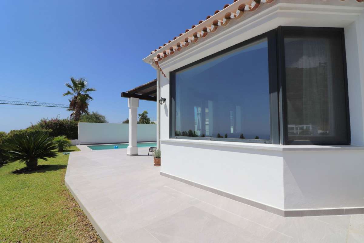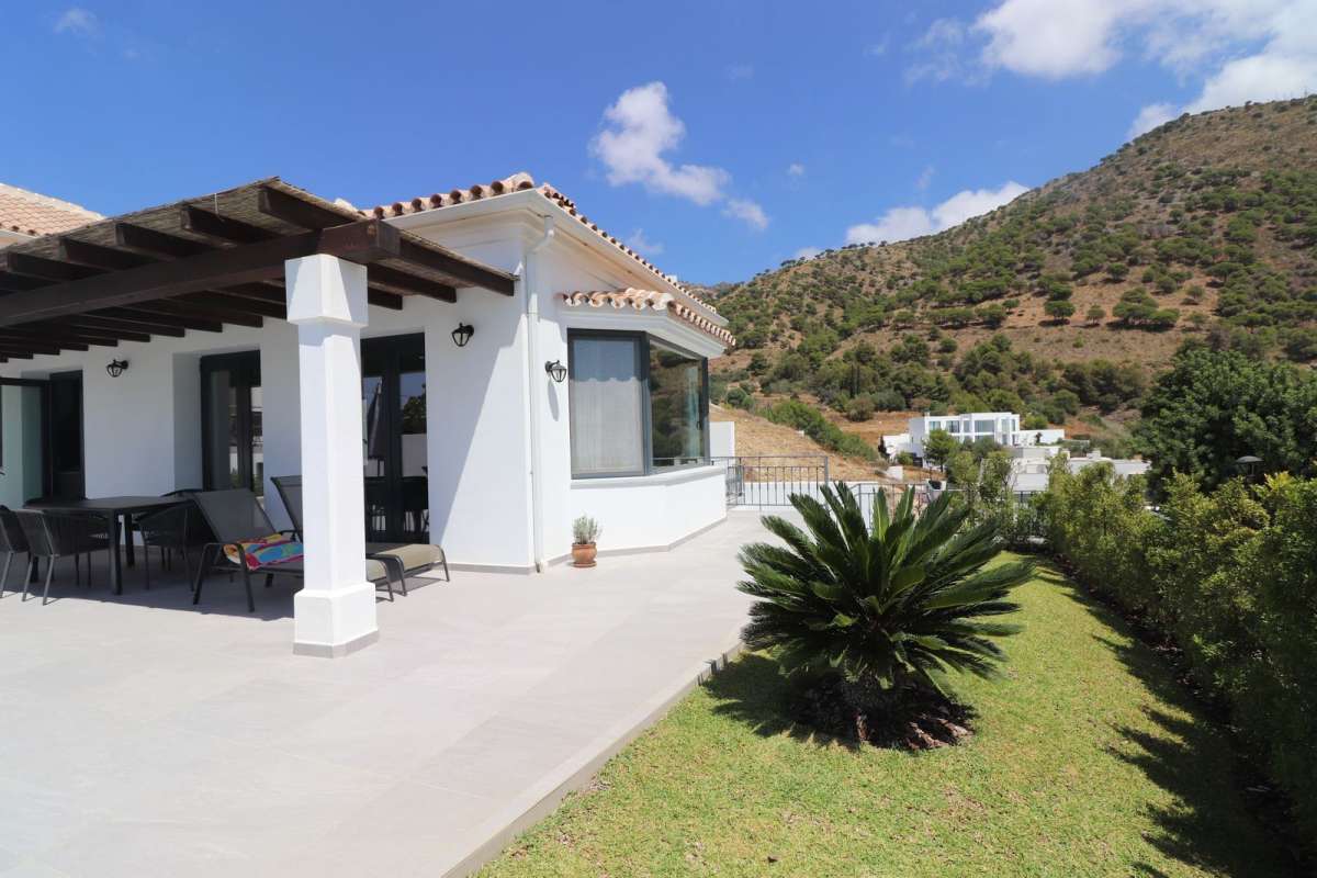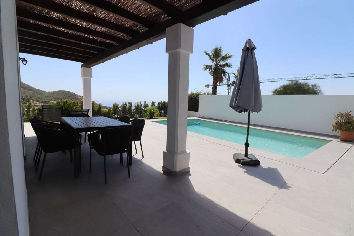 Elegant and Sophisticated Villa with Panoramic Views in Buena Vista, Mijas Perched in the sought-after residential enclave of Buena Vista, Mijas, this exquisite villa built in 2018 perfectly blends elegance, comfort, and modern design. With breathtaking panoramic views of the sea, coast, and mountains, this is a unique opportunity to enjoy luxury living in one of the most desirable locations on the Costa del Sol. Property Overview Located within a secure and tranquil gated community with 24-hour security, the villa enjoys a southeast orientation and is distributed over three well-planned levels, offering privacy, functionality, and style throughout. Main Floor Spacious, bright living room with large windows and double patio doors opening onto a covered terrace and private pool area. Cozy fireplace with a cast iron wood burner for year-round comfort. Separate, fully equipped kitchen and dining area with high-end appliances. Guest cloakroom. Direct access to the terrace, ideal for al fresco dining and relaxing with stunning views. First Floor Master bedroom with a private balcony and an en-suite bathroom featuring a walk-in shower. Two additional double bedrooms sharing a modern family bathroom with walk-in shower. Lower Level Generously sized fourth bedroom with en-suite bathroom and walk-in closet. Indoor pool shower and changing room just a few steps down. Vast multi-use area with potential for a home cinema, gym, or entertainment room, with pre-installation for a bathroom. Laundry room, storage rooms, and space housing the solar-powered hot water system. Large lock-up garage with capacity for up to four cars or a boat. Exterior Features Private swimming pool surrounded by a spacious sunbathing area. Dedicated BBQ area for outdoor entertaining. Low-maintenance garden with mature trees and shrubs surrounding the property. Large covered terrace connecting the living and kitchen areas—perfect for enjoying the panoramic views year-round. Large water purification system installed. Location Highlights Less than 10 minutes to the beach. Only a 10-minute drive to both Mijas Pueblo and Benalmádena Pueblo. Quick access to the A7 motorway and Málaga Airport, ideal for commuters and frequent travelers. Additional Features Underfloor heating throughout. Ducted dual air conditioning system. Elegant oak interior doors. Fully furnished and move-in ready. This impressive villa represents a rare opportunity to acquire a high-quality home with stunning views, modern amenities, and an unbeatable location. Whether you're looking for a permanent residence, a holiday home, or an investment property, this home checks all the boxes. Contact us today to arrange your private viewing—this exceptional property won’t stay on the market for long.