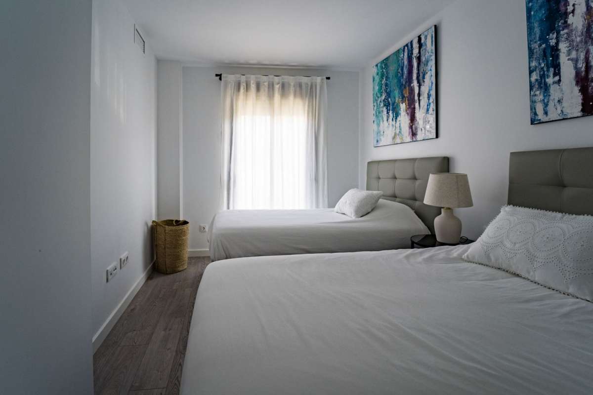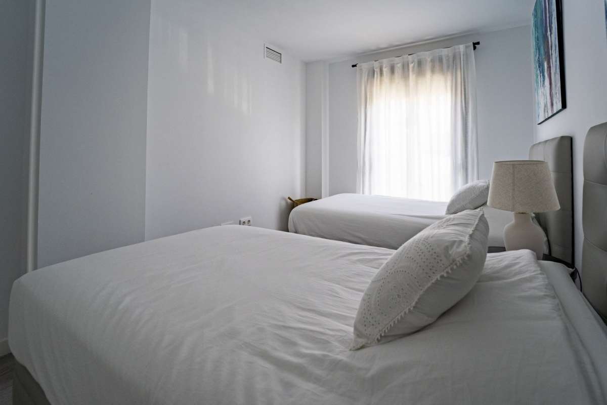 On the first floor, two well-appointed bedrooms provide cozy sleeping arrangements—one with a double bed and the other with two single beds. The top floor is reserved for the master suite, complete with a private bathroom and an exclusive terrace, offering the perfect spot to enjoy quiet moments in the sun.