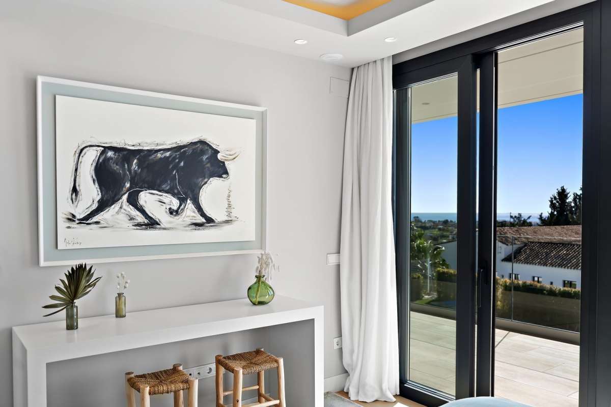 Contemporary villa with great sea views and south facing, with large windows so all rooms are light and airy. The villa is in the municipality of Estepona, set between the mountains and the sea.