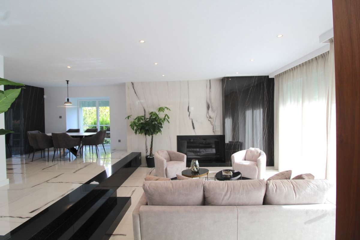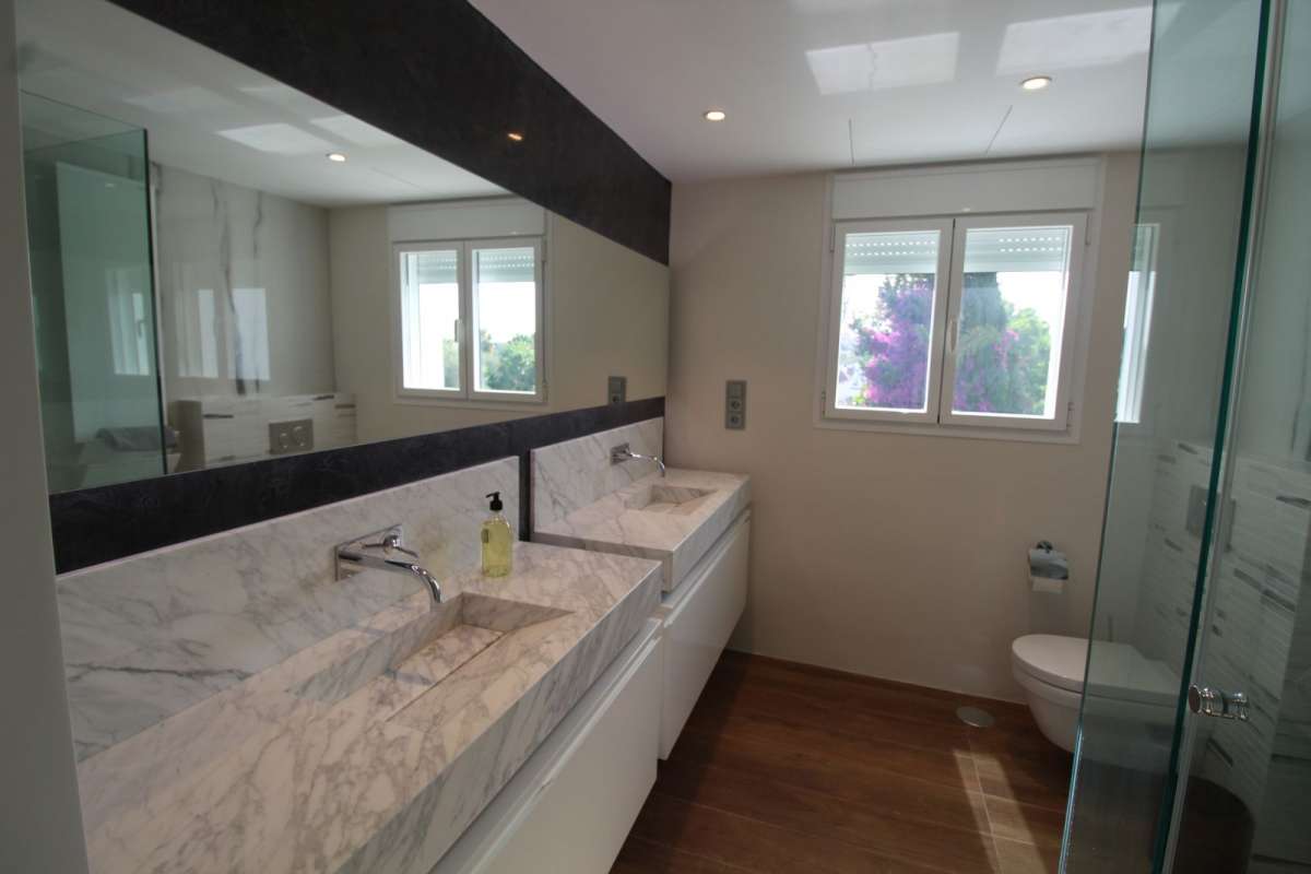 Nice Villa with espectacular open mountain, landscape and pool views, in Nueva Andalucia, Located in a peaceful and private location just a few minutes from Puerto Banus and Marbella at walking distance of private schools and amenities The villa build with high standard quality, has 5 bedrooms all en suite with full bathrooms, a spacious and luminous living room with direct access to the terrace that leads into the garden and the swimming pool. The property has a basement, special place for gym or games room, fully fitted large kitchen/utility room.
