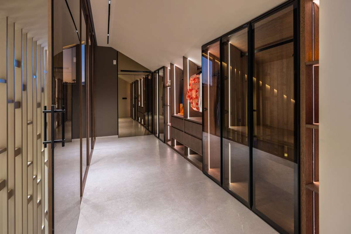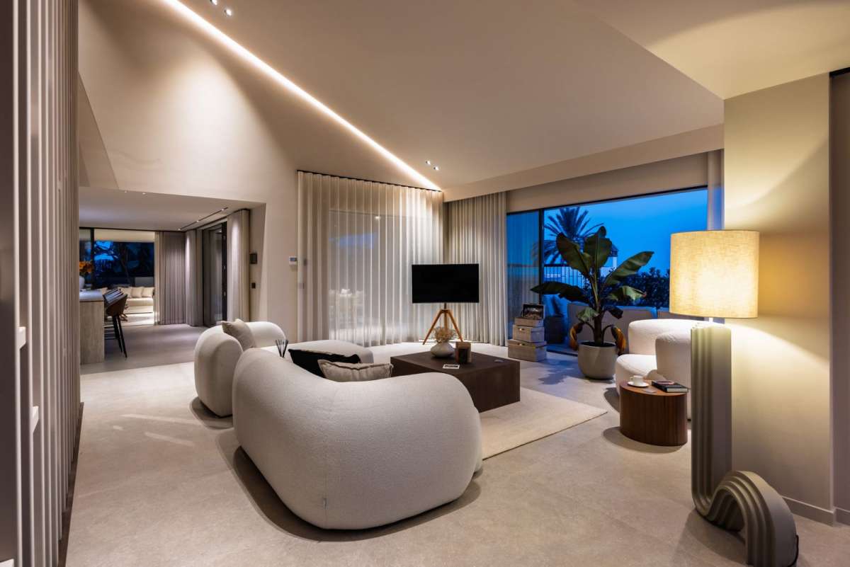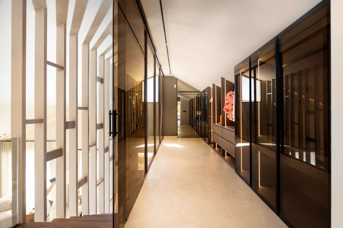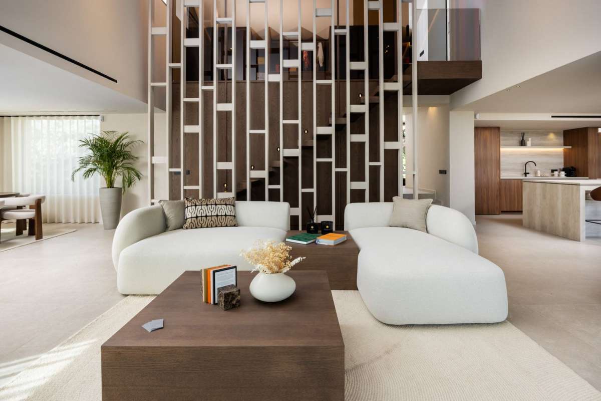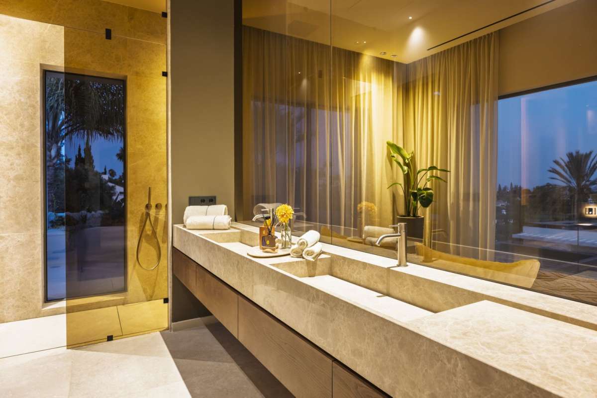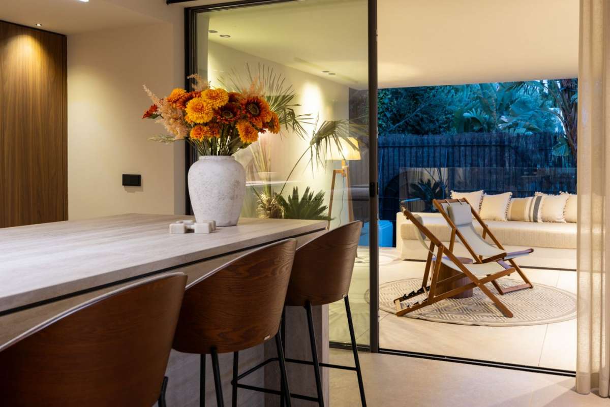 HIGHLIGHTS Located in the prestigious Golf Valley of Nueva Andalucía, Centauro 15 is an exceptional villa that blends contemporary architecture with Balinese boho inspiration and lush tropical aesthetics. This unique property was completely redesigned and renovated in 2025 to offer an immersive living experience, where natural light, high-quality materials, and a sensory connection with the landscape take center stage. INTRODUCING THE PROPERTY Situated in a quiet and secure residential area, the villa is just minutes away from the most renowned golf courses on the Costa del Sol, international schools, gourmet restaurants, and the vibrant social and commercial life of Puerto Banús. It is perfectly located in an enclave that combines serenity and accessibility. Every corner has been thoughtfully designed for those who value sophistication, privacy, and an exclusive lifestyle in one of Marbella’s most sought-after residential areas. EXTERIOR The meticulously designed tropical garden surrounds the property with palm trees and flowers that evoke peace and harmony. Various relaxation chill-out areas and terraces are integrated across multiple levels, offering great views over the golf valley. The terraced exterior design allows for spaciousness and privacy while maintaining a close relationship with the natural surroundings, providing an oasis of calm and exclusivity. Additionally, the property includes three outdoor parking spaces. INTERIOR The sloping ceilings and large windows flood the spaces with natural light. The interior design combines clean lines and natural finishes in neutral tones with noble materials, creating an atmosphere of serene elegance. The architectural layout favours a perfect integration between the interior and exterior spaces. Upon entering the property, you will find spacious, bright, and welcoming living areas with high ceilings, which share the limelight with the fully equipped kitchen. The villa features five carefully decorated bedrooms and six modern bathrooms, five of which are en suite. On the upper floor, the impressive master suite is a private retreat with a spacious wooden walk-in closet, glass doors, and windows that offer open views of the golf valley. The lower floor offers an independent apartment with its bathroom and kitchen, ideal for guests or staff. Additionally, the large basement features a bright bar area with direct access to the pool and a spacious laundry facility. There is also ample room for a customizable space for a gym, a home cinema, or a creative studio, all according to the buyer’s preferences. An additional garage with a private entrance completes this level, enhancing functionality and comfort. The villa is being sold fully furnished. Centauro 15 represents the epitome of modern luxury in harmony with nature. Ideal for families or discerning buyers seeking a residence where innovative design, functionality, and aesthetic beauty coexist in perfect symbiosis.