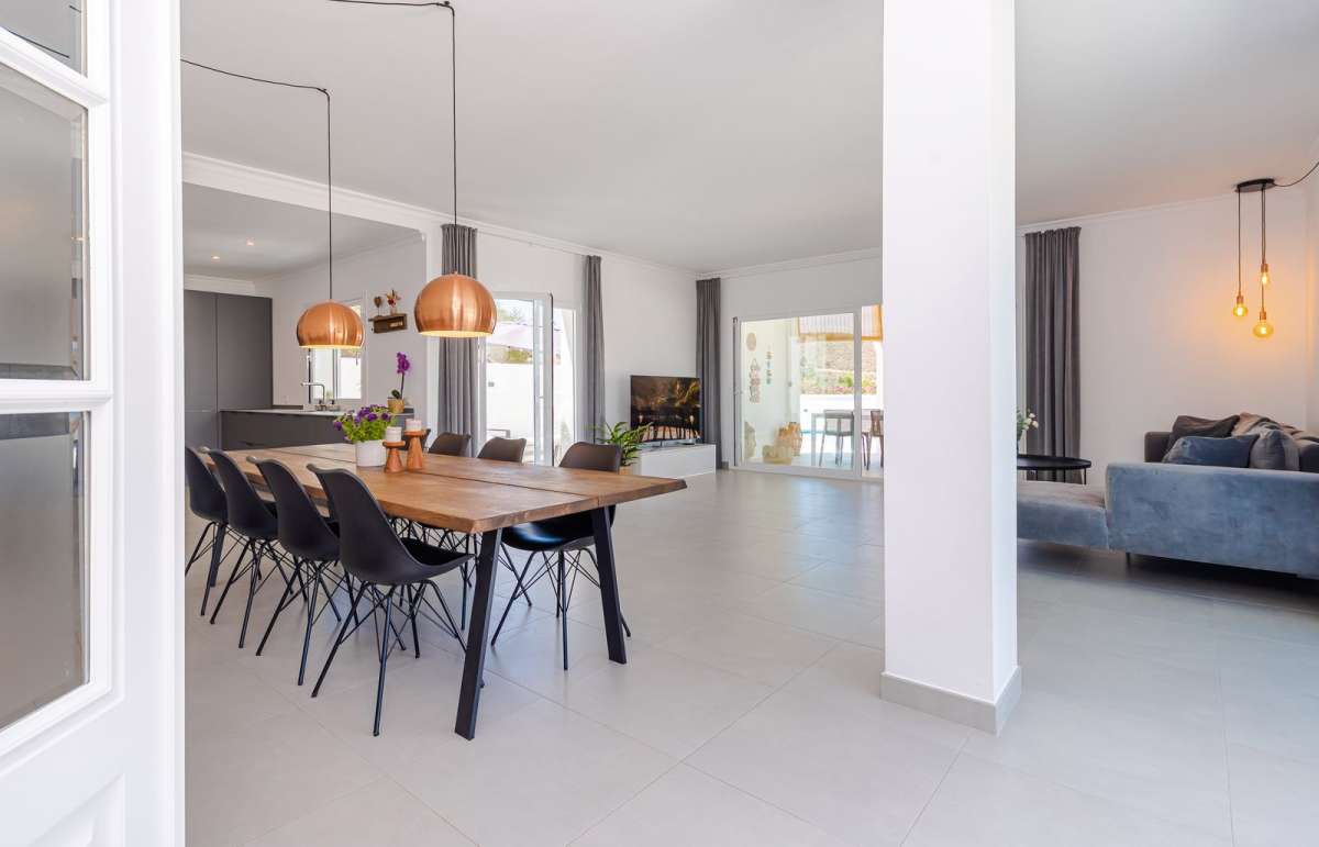 Open-concept kitchen and dining area