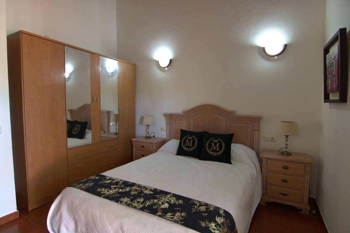 At the back of the property, there is a saltwater swimming pool surrounded by a sunbathing area, perfect for relaxing and enjoying the Costa del Sol climate.