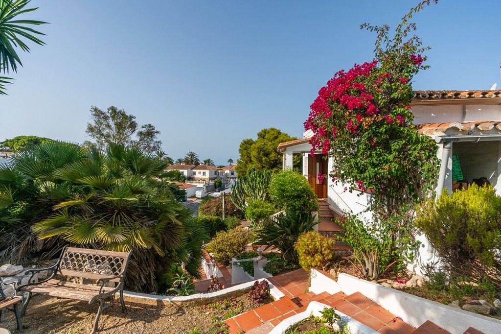 Traditional house in El Faro in Mijas-Costa with two levels and with beautiful sea views offering in the main residence a living room with separate dining room and bright terrace, kitchen, two bedrooms and two bathrooms. The guest apartment offers a living room, kitchen, and one bedroom and bathroom. The house has a lovely roof terrace with sun all day, storage room and ample garage. Central gas central heating in the guest apartment and underfloor heating in the main house. Ideal family house just a short drive from the beach and from Fuengirola.