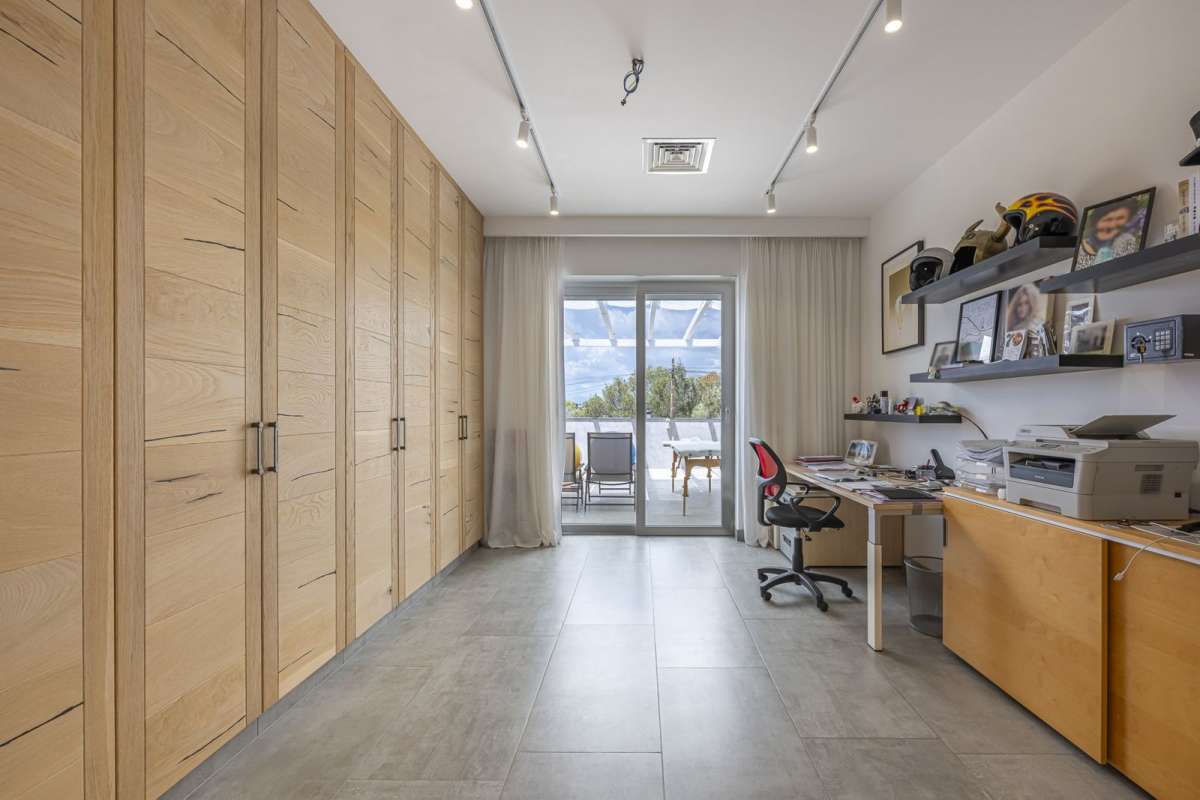 The villa's lower level is currently used as a home office with its own bathroom and shower, making it perfect for remote work, a gym or independent guest accommodation. Other features include solar panels with potential for expansion, underfloor heating, three garages and a spacious driveway for up to five cars.