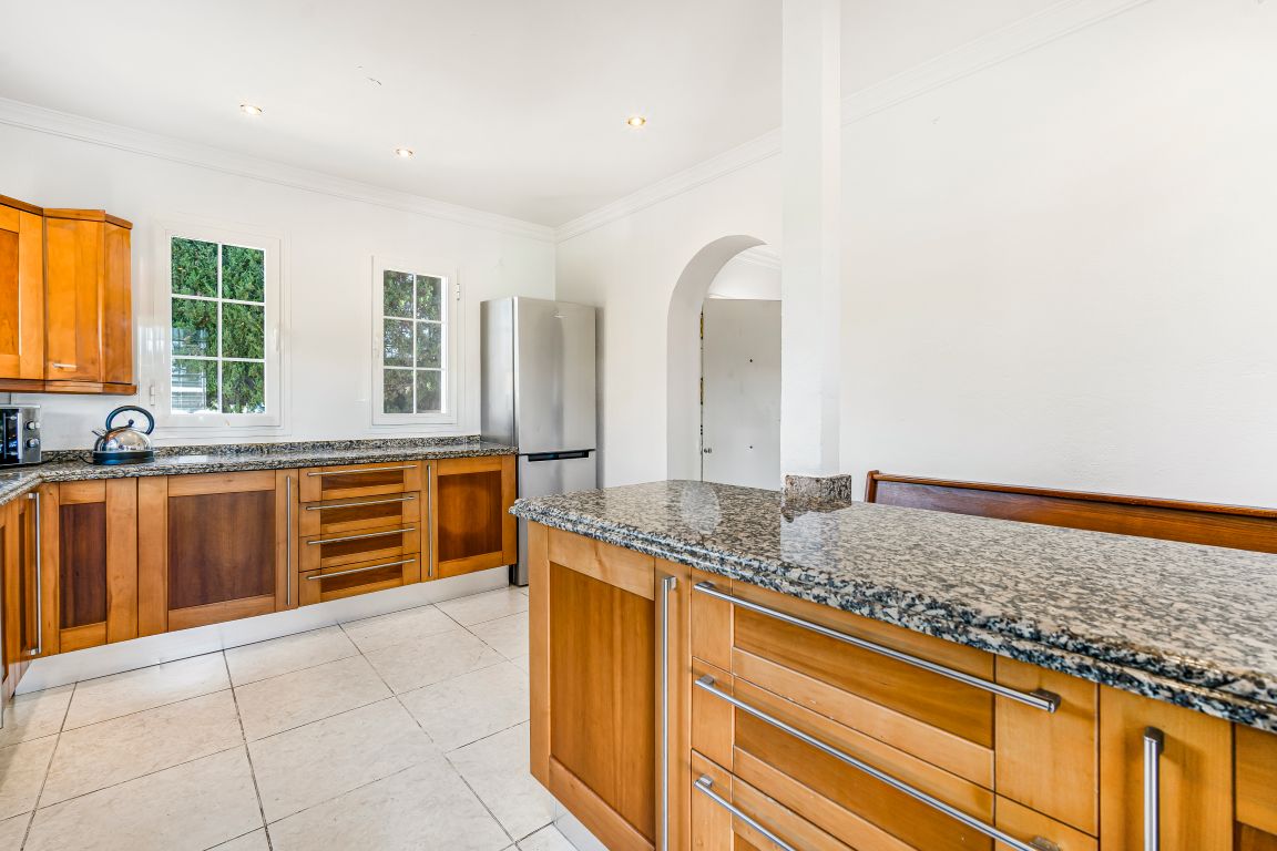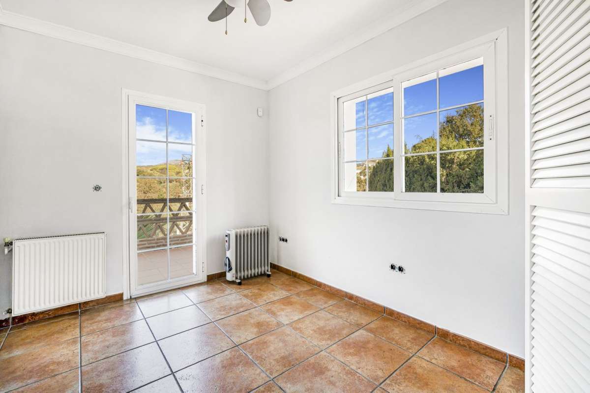 Fantastic opportunity; a four bedroom, south west facing villa in Elviria, close to all amenities, only a ten minute drive from Marbella Town, Puerto Banús, and close to the beach. The villa is distributed over two levels and set on a plot of 1324m2; with garden, private swimming pool and BBQ area. The entrance level has an open plan living and dining area with built in fireplace and access to the terrace and gardens; guest bedroom; guest bathroom; fully fitted kitchen; and office area. The upper level has the master suite with access to a large terrace with beautiful views to the pool and mountains; two guest bedrooms; and a guest bathroom. Other features include exterior parking for two cars, fitted wardrobes and storage room. A property with massive potential to renovate.