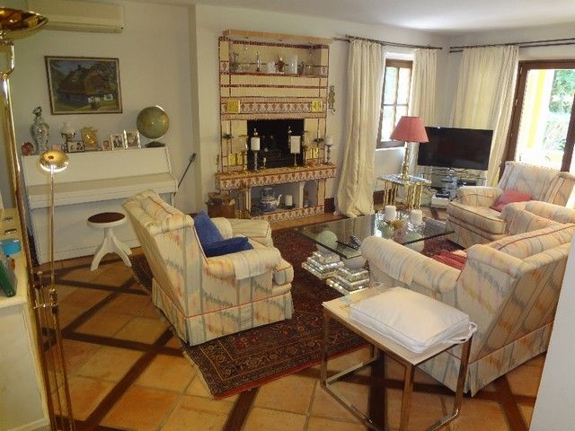 Charming villa with a rustic touch, reformed (2002) with very good construction quality. Located in a residential area of Elviria. Beautiful views, sea, golf and mountain. Air aconditioning (hot/cold). Alarm system. Fireplace. Automatic irrigation system. Guest area. Mature garden with swimming pool.