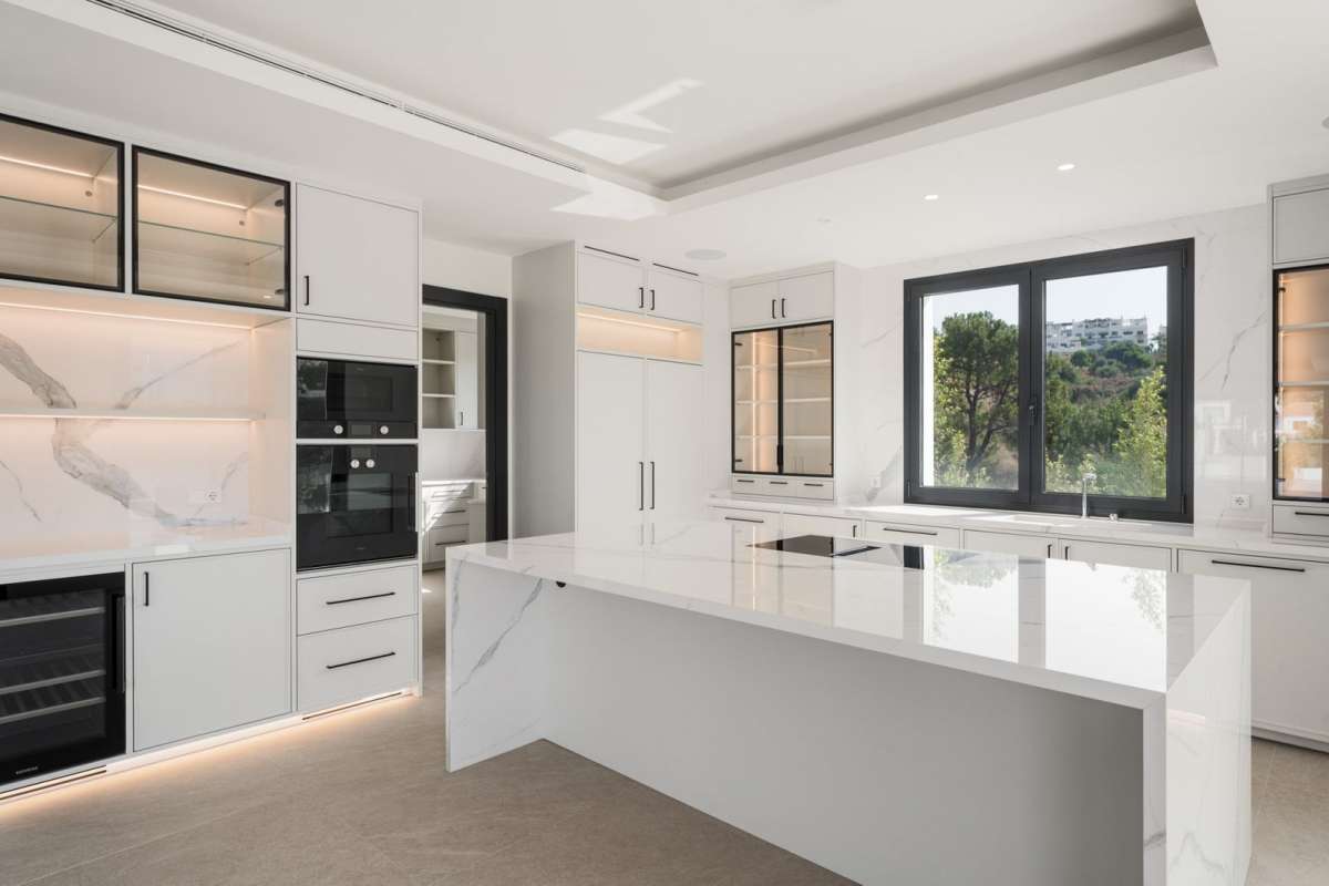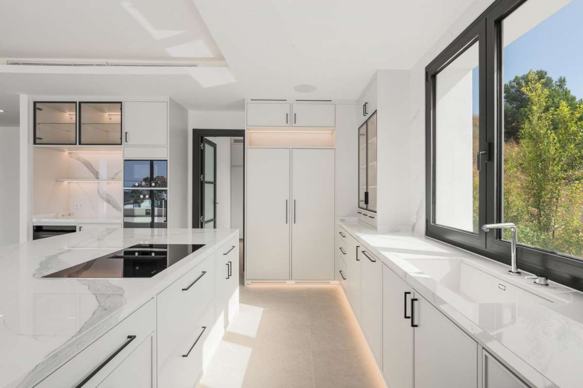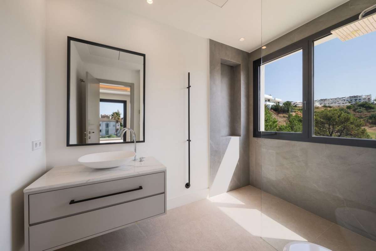 Villa Three, located in the distinguished La Resina Golf community within Estepona’s flourishing residential zone, is an architectural statement combining contemporary sophistication and practical luxury. Designed by the acclaimed Francisco Martínez Galván, this four-level residence encompasses an impressive total built area of 674 square meters. The interior offers 503 square meters of meticulously crafted living space, while an additional 171 square meters of terrace ensures a seamless transition between indoor elegance and open-air enjoyment.