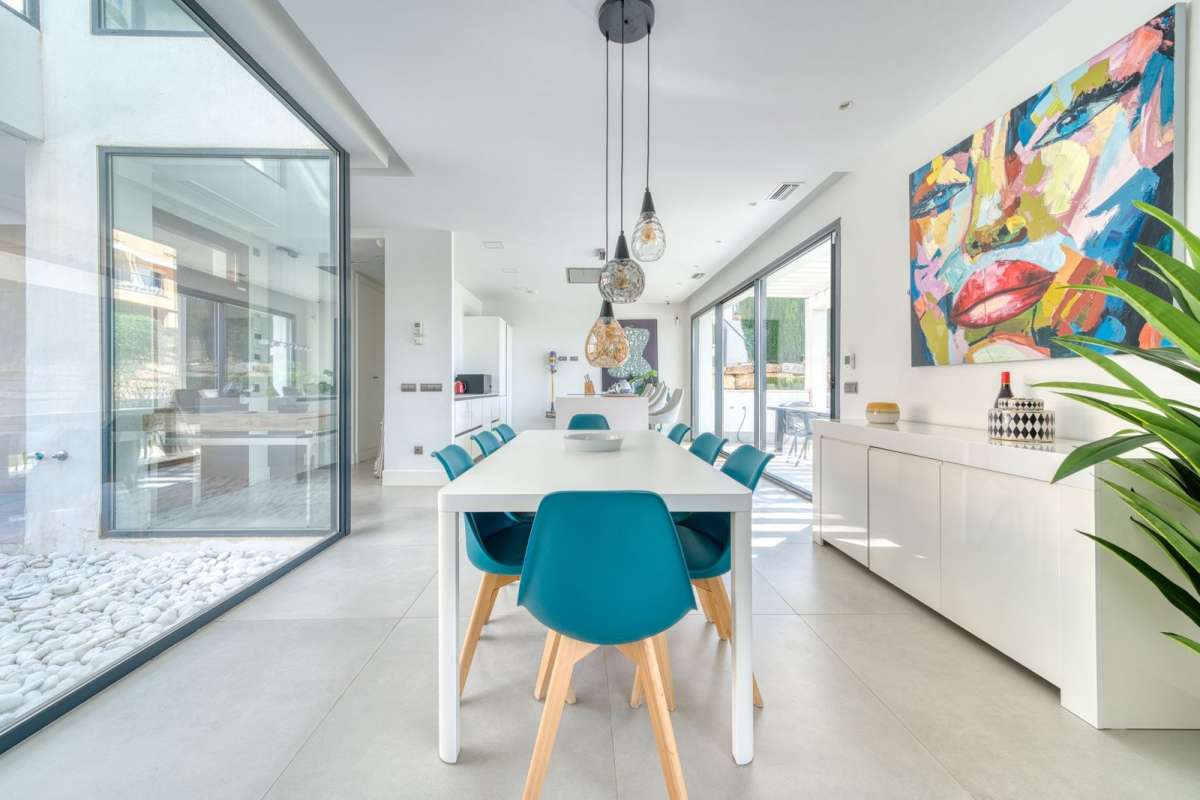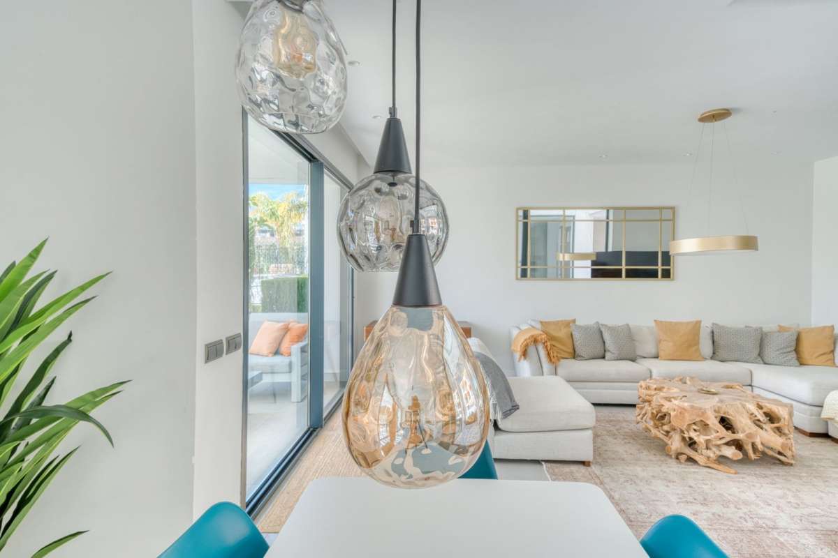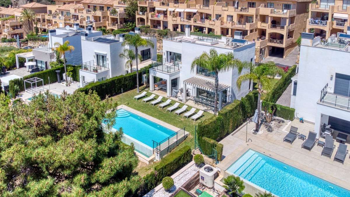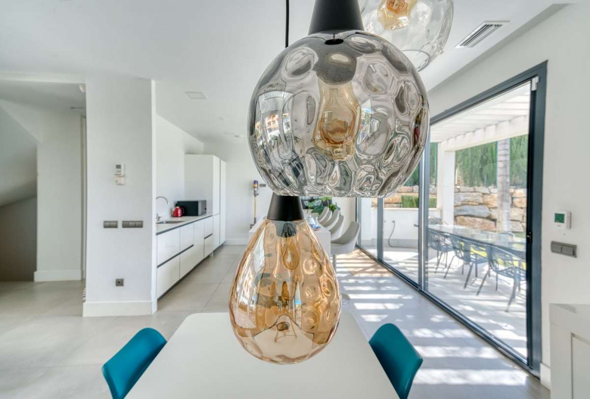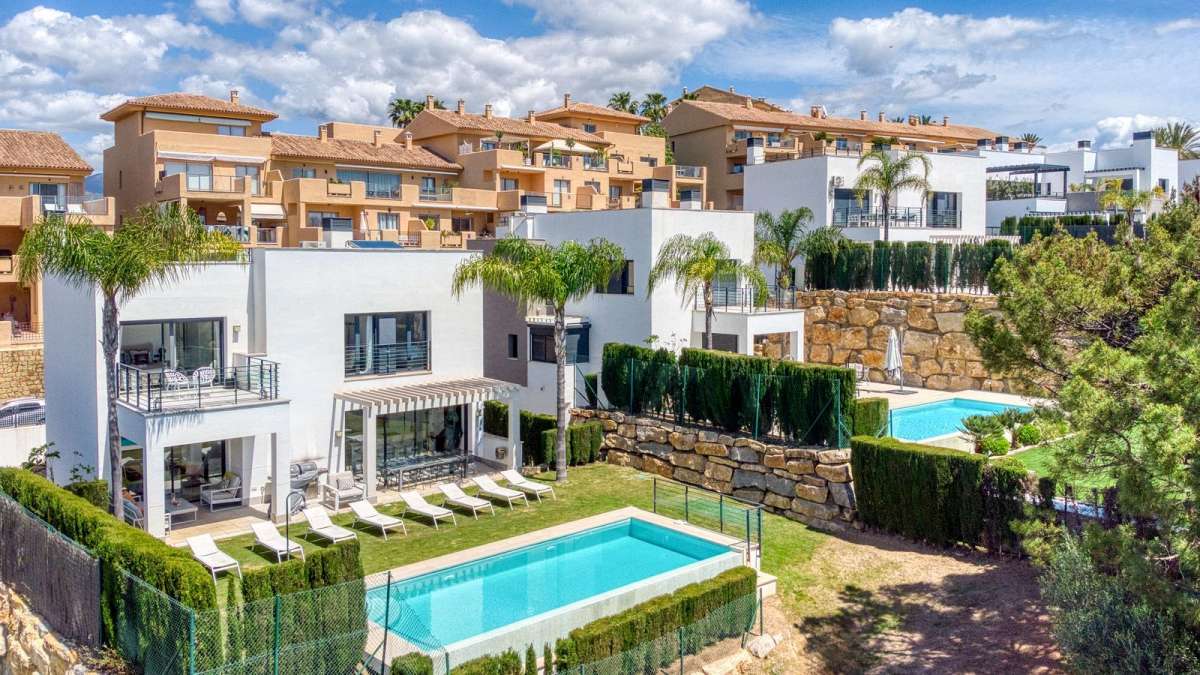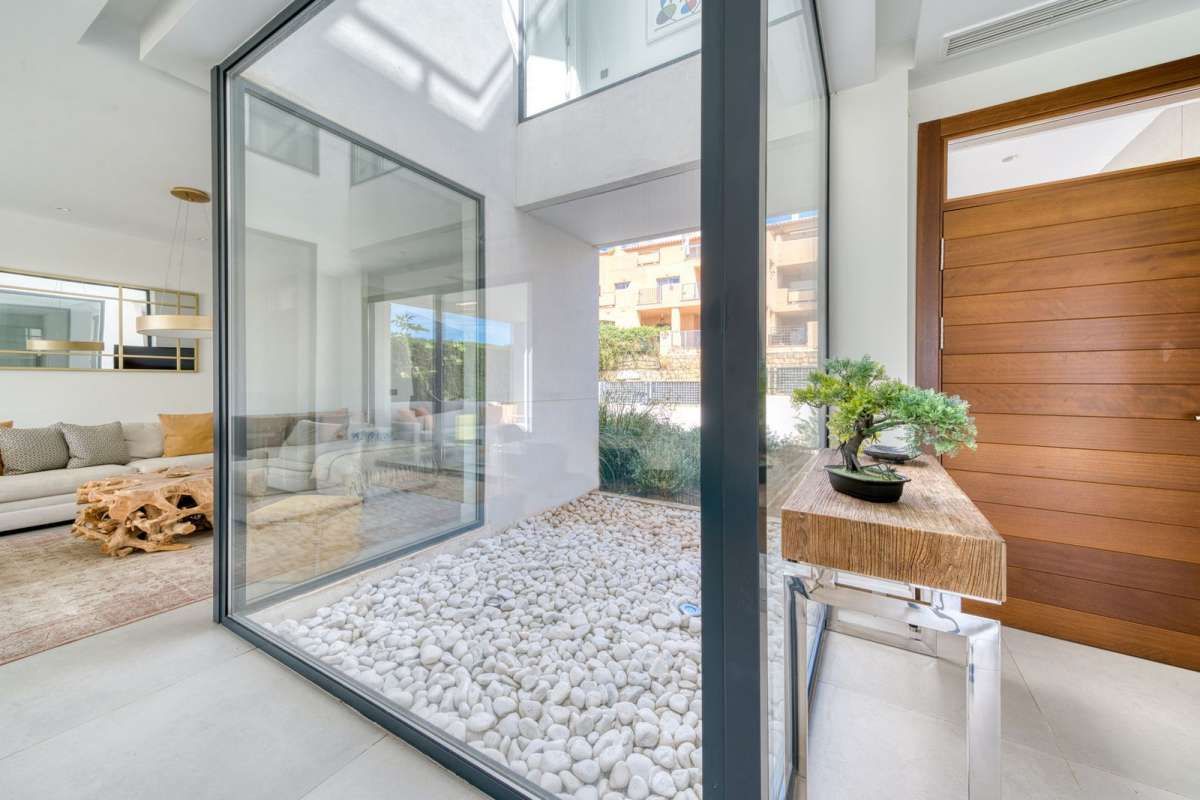 This exquisite detached villa is situated within a sought after gated community on the New Golden Mile in Estepona, adjacent to an exclusive golf course and within close proximity to the beach. Meticulously constructed with top-quality materials, fixtures, and fittings, this brand-new property boasts exceptional standards of luxury. Briefly comprising four bedrooms and a guest toilet, the open plan interior design features a lounge and dining area complete with a fireplace, a contemporary fully-fitted kitchen equipped with high-end Bosch appliances, a separate laundry room, and air conditioning throughout. Underfloor heating adds to the overall comfort of the villa. Further attributes of this remarkable property include a private garage, with additional outdoor parking for one or two vehicles, as well as a spectacular infinity-style swimming pool that complements the magnificent private garden. Expansive open terraces offer breathtaking panoramic views of the golf course and the sea from the upper level. The villa also features an electronic video intercom and home automation system, hot water produced through a solar energy system, and a hygro-regulated controlled mechanical ventilation system that regulates the ventilation of the entire house. This stunning property is a true example of luxury living, offering its occupants a refined, sophisticated, and contemporary lifestyle at an extremely competitive price!