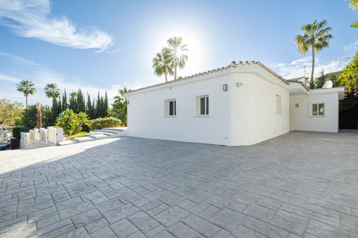 This beautiful recently renovated villa is situated on a large plot, in a very quiet and private area of Estepona. Just a short drive away you'll find everything you need, wonderful beaches, sea side walks and all the quaint Spanish towns of the Costa del Sol. With a south orientation, it enjoys plenty of natural light throughout the day, and its design allows for a beautiful view of the pool, surrounding area and tropical gardens.