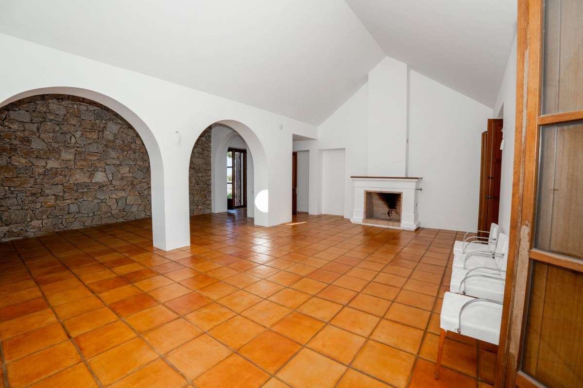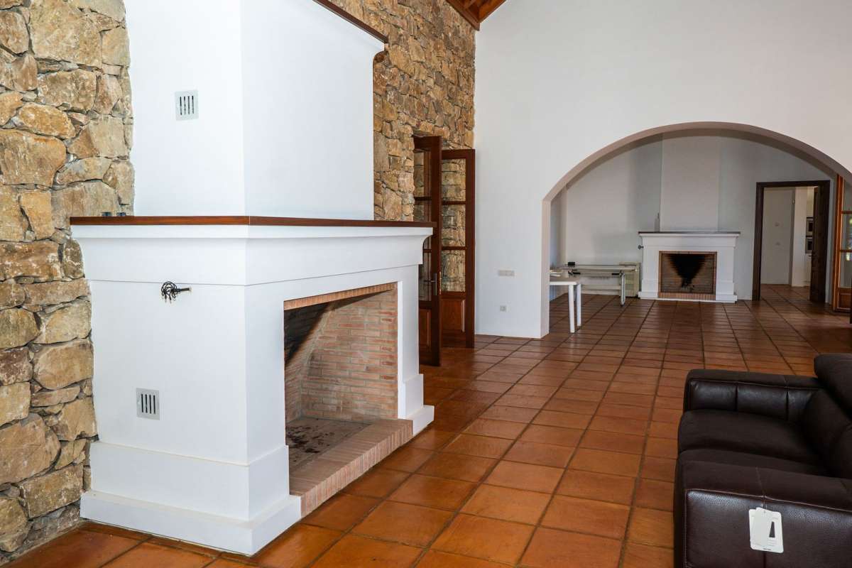 Highlights include a spacious living room with fireplace, a modern kitchen (ready for installation to taste), high ceilings, and quality construction throughout. The property also has ample outdoor areas ideal for creating a pool, landscaped gardens, or chill-out zones.