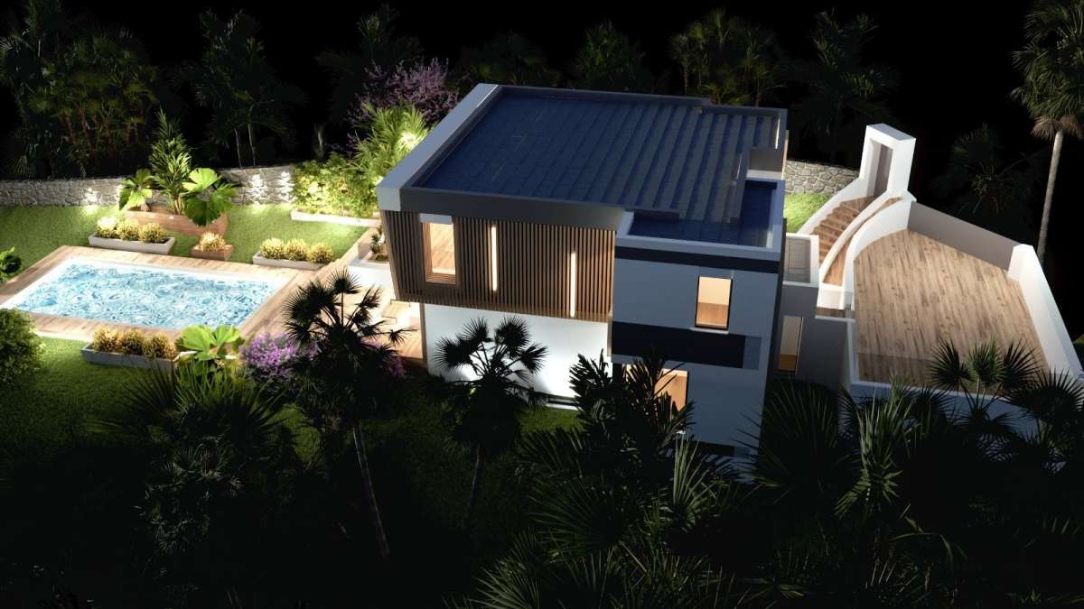 Plot of 1000m2 – Constructed under 527,02m2 – Divided in to 4 parts as follow: 1. Basement: with x m2, where the person who will own this can make a beautiful space divided in to 3 or 5 activities as per our idea (Gym, Spa, Gaming zone, Cinema Hall, also an office in case you would like to work from home). The full villa has floor heating system installed. Ground Floor: composed of beautiful views with internal villa with pool and sea views, there is amazing greenery of the villa itself, with a chill zone to relax, equipped kitchen, spacious living room and dining room. There is one large room with ensuite bathrooms, First Floor: includes large master bedroom with master bathroom and additional 2 bedrooms with ensuite bathrooms all has small terrace with views. Covered Floor: there will a solar system installed for the full villa, which will be used for the water and also light, there will be a small terrace also on the rooftop.