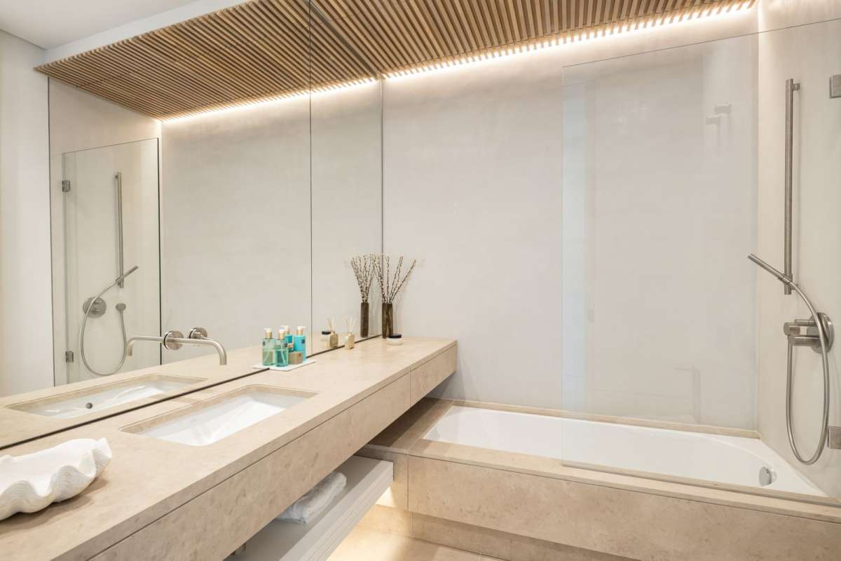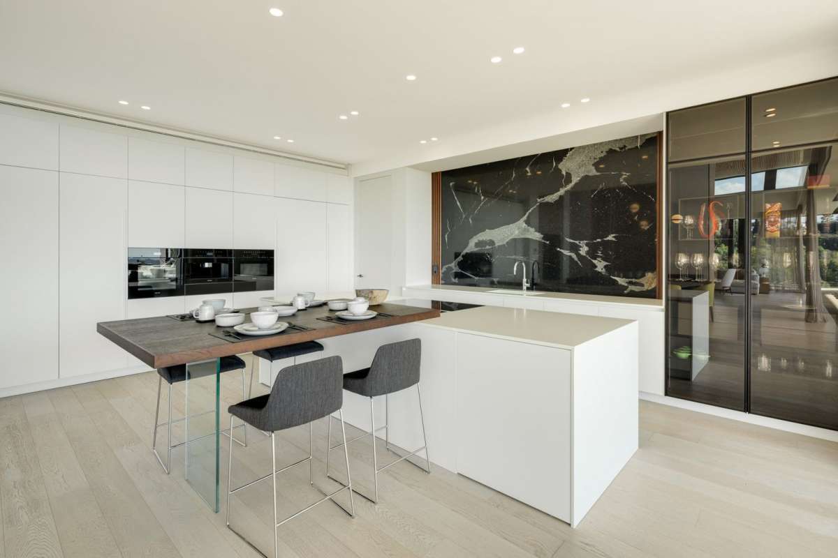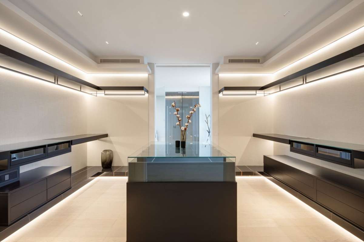 The lower level is a haven for leisure and wellness, offering a gym, a tranquil spa, and an entertainment area with a billiard table, poker table, and home cinema.