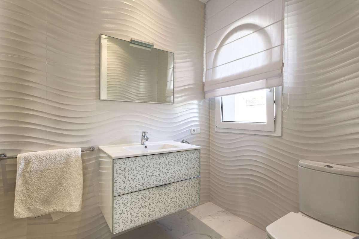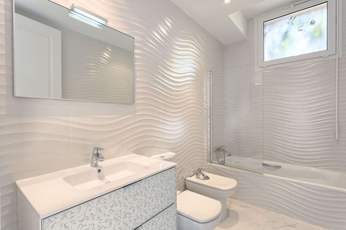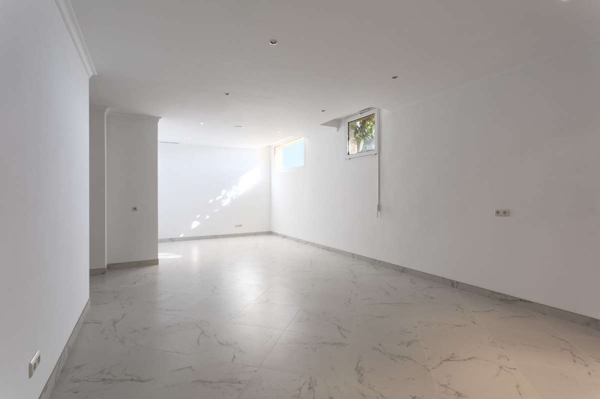It consists of a beautiful hall/distributor that leads on one side to the spacious and bright living-dining room with access to the main terrace and from which, via stairs, you go down to the garden where the fantastic infinity pool is also located. On the other hand is the kitchen, fully equipped with Siemens and AEG appliances, open plan, very modern and attached to it, a laundry room. In addition there is a double bedroom with an en-suite bathroom and a guest toilet. From the lobby, via stairs or the elevator you can access the other floors.