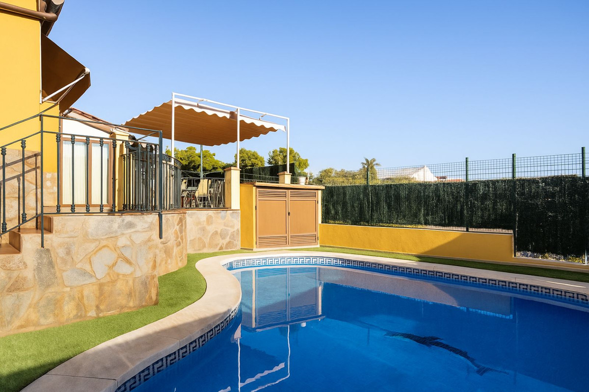 Description Detached Villa, Málaga Este, Costa del Sol. 5 Bedrooms, 3 Bathrooms, Built 281 m², Garden/Plot 620 m². Setting : Town, Close To Schools. Orientation : East, South, West. Condition : Recently Refurbished. Pool : Private. Climate Control : Air Conditioning, Fireplace. Views : Garden. Features : Fitted Wardrobes, Private Terrace, Games Room, Utility Room, Ensuite Bathroom, Barbeque, Double Glazing, Staff Accommodation. Garden : Private. Parking : Private.