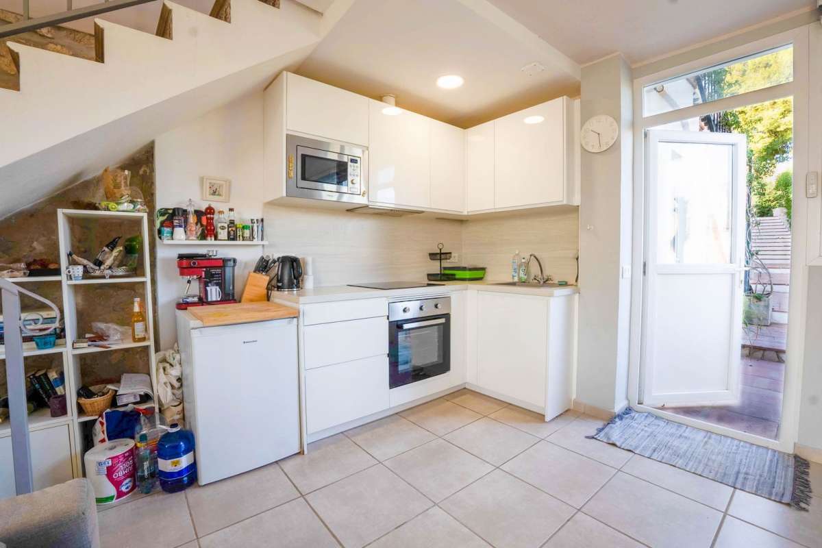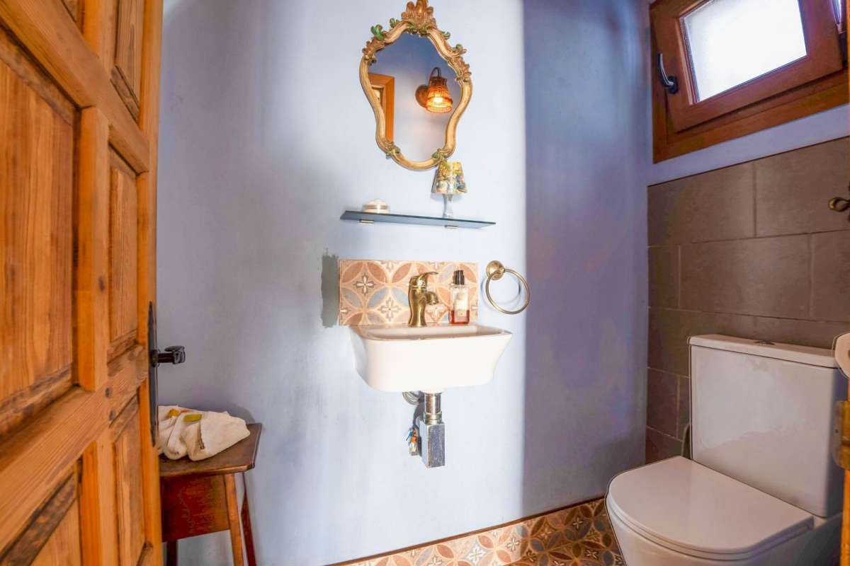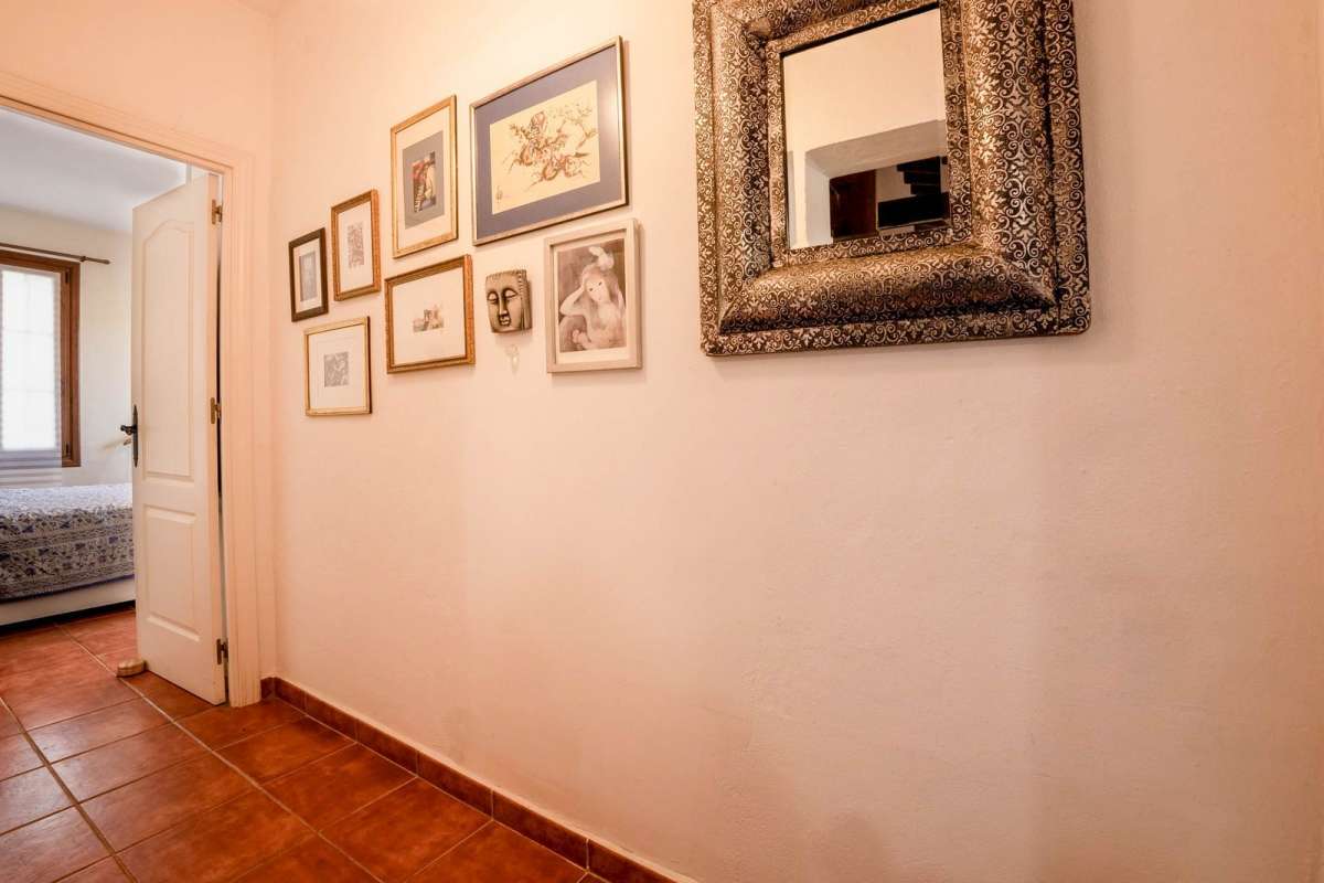 Outside, the recently refurbished swimming pool and surrounding terraces create a serene space for relaxation and outdoor entertaining, surrounded by almond and fruit trees. A self-contained guest apartment, accessed via an external staircase, provides ideal accommodation for visitors or extended family.