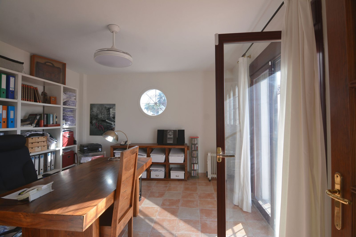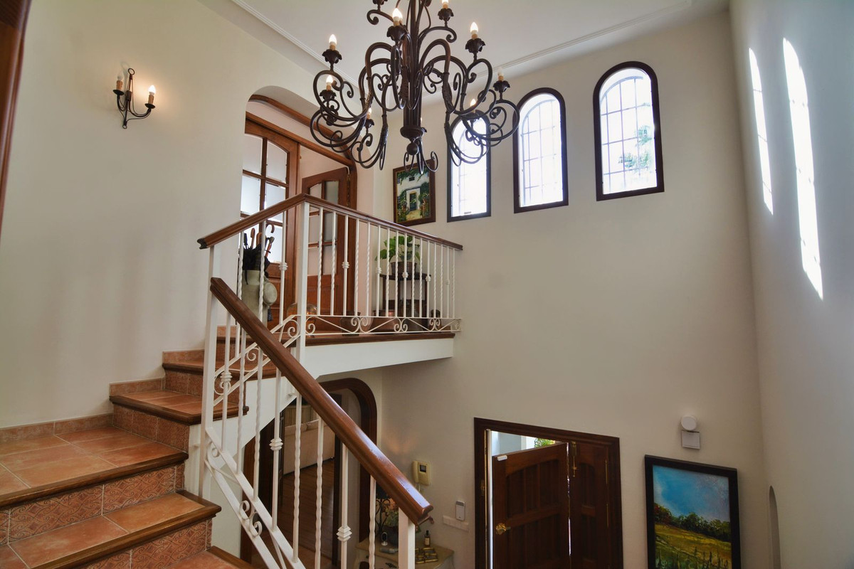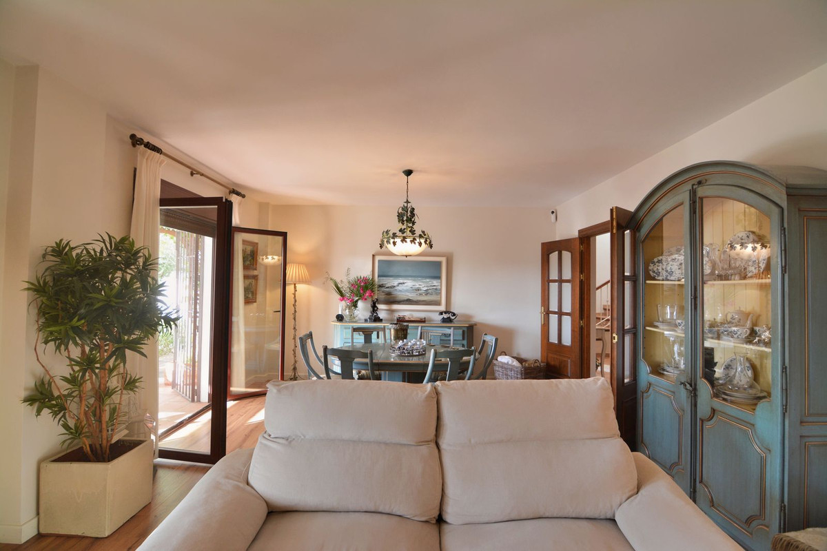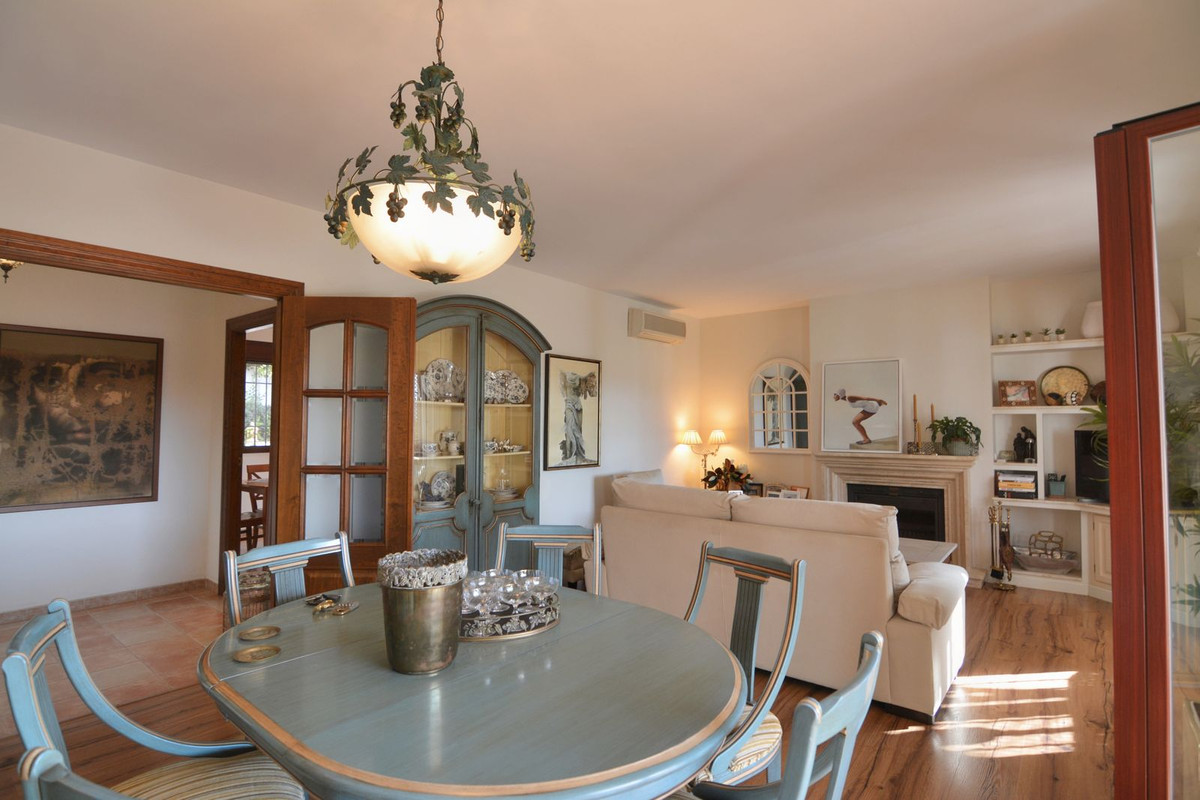 Discover your new home in this luxury villa in perfect condition, featuring 5 bedrooms and the unmistakable charm of Mijas Golf. A unique property that combines elegance, space and comfort in a peaceful and exclusive setting, surrounded by nature and just minutes away from all amenities. Located next to the prestigious Mijas Golf course and the renowned Hotel La Zambra, this villa enjoys an unbeatable location, close to padel courts, St. Anthony’s International School, only three minutes’ drive from the heart of Mijas Costa and ten minutes from Fuengirola town centre. The property stands on a plot of 858 m² with a mature garden and a private pool, perfect for enjoying the sunny climate of the Costa del Sol. On the main floor, a spacious and bright living room with direct access to the covered porch invites you to relax and enjoy outdoor gatherings. The independent kitchen is large and functional, with access to a charming rear terrace ideal for breakfast in the sun. This floor also includes a guest toilet. On the upper level, the master bedroom stands out with its large window and en-suite bathroom. The other three bedrooms are bright and spacious, one of which is currently used as an office and features a spectacular 40 m² private terrace with open views of the garden, pool and mountains — the perfect spot to enjoy breathtaking sunsets. This area is equipped with water and electricity connections, allowing it to be easily converted into an additional living space. The basement offers a versatile area with the possibility of creating an independent entrance, ideal for a private apartment, guest suite or separate space for older children. Additional features include a 16,000-litre water tank, a closed garage for two or three cars with the option to install an electric vehicle charger, and a meticulously maintained garden service that has been in place for over 20 years. The property is fully fenced, offering complete privacy, surrounded by two 18-hole golf courses and open views of the natural surroundings. This villa is much more than just a house — it is a sanctuary where every corner exudes serenity, beauty, and the true essence of Mediterranean living. Perfect for those seeking privacy, comfort and a real connection with nature while remaining close to everything that Mijas Golf has to offer.