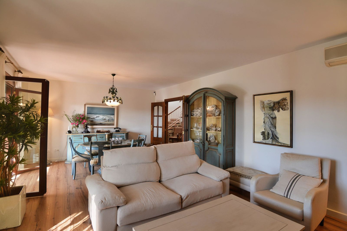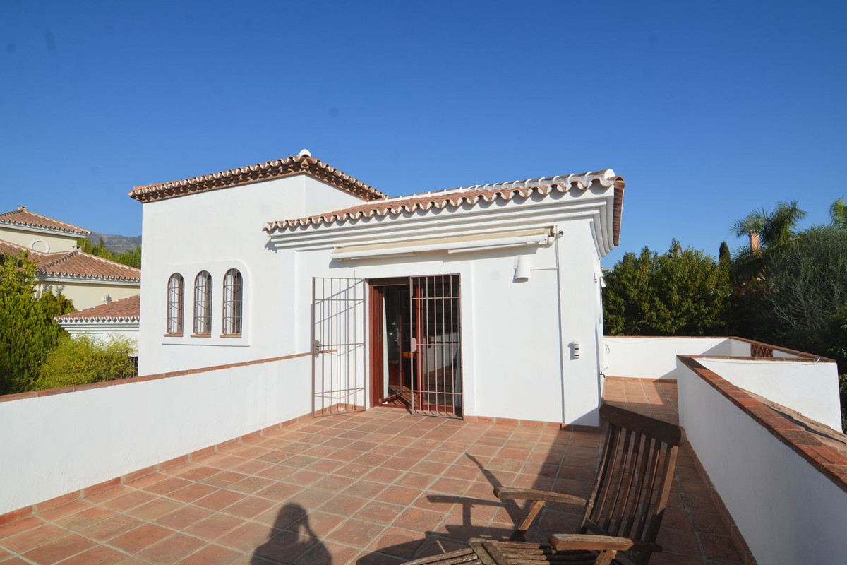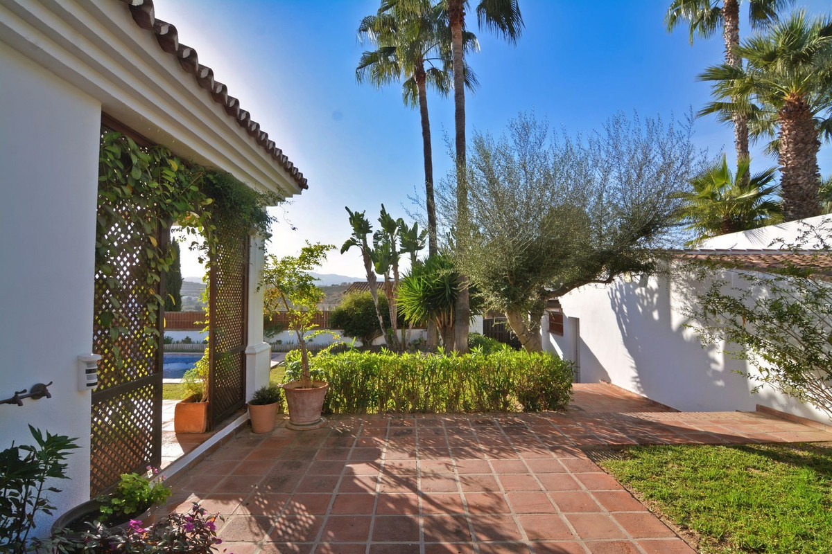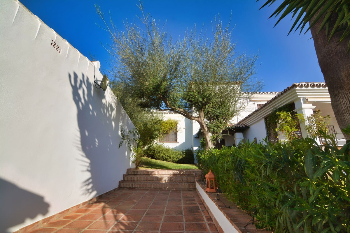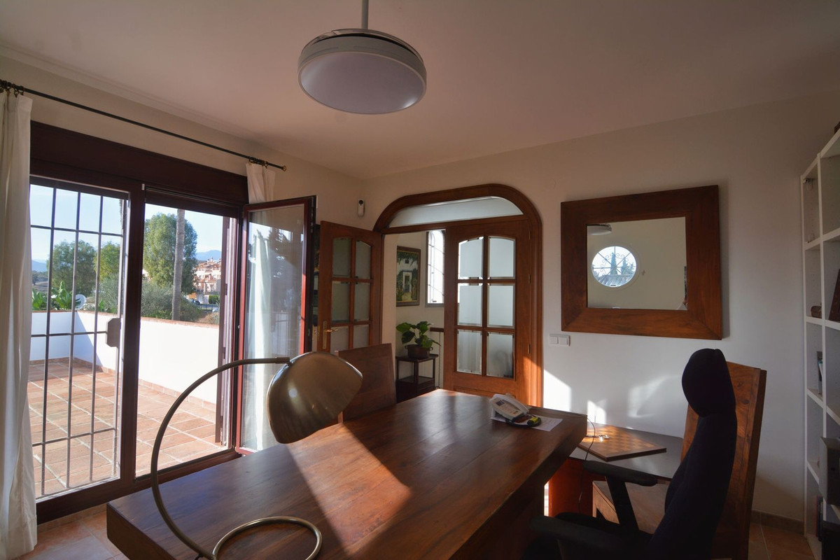 Discover your new home in this luxury villa in perfect condition, featuring 5 bedrooms and the unmistakable charm of Mijas Golf. A unique property that combines elegance, space and comfort in a peaceful and exclusive setting, surrounded by nature and just minutes away from all amenities. Located next to the prestigious Mijas Golf course and the renowned Hotel La Zambra, this villa enjoys an unbeatable location, close to padel courts, St. Anthony’s International School, only three minutes’ drive from the heart of Mijas Costa and ten minutes from Fuengirola town centre. The property stands on a plot of 858 m² with a mature garden and a private pool, perfect for enjoying the sunny climate of the Costa del Sol. On the main floor, a spacious and bright living room with direct access to the covered porch invites you to relax and enjoy outdoor gatherings. The independent kitchen is large and functional, with access to a charming rear terrace ideal for breakfast in the sun. This floor also includes a guest toilet. On the upper level, the master bedroom stands out with its large window and en-suite bathroom. The other three bedrooms are bright and spacious, one of which is currently used as an office and features a spectacular 40 m² private terrace with open views of the garden, pool and mountains — the perfect spot to enjoy breathtaking sunsets. This area is equipped with water and electricity connections, allowing it to be easily converted into an additional living space. The basement offers a versatile area with the possibility of creating an independent entrance, ideal for a private apartment, guest suite or separate space for older children. Additional features include a 16,000-litre water tank, a closed garage for two or three cars with the option to install an electric vehicle charger, and a meticulously maintained garden service that has been in place for over 20 years. The property is fully fenced, offering complete privacy, surrounded by two 18-hole golf courses and open views of the natural surroundings. This villa is much more than just a house — it is a sanctuary where every corner exudes serenity, beauty, and the true essence of Mediterranean living. Perfect for those seeking privacy, comfort and a real connection with nature while remaining close to everything that Mijas Golf has to offer.