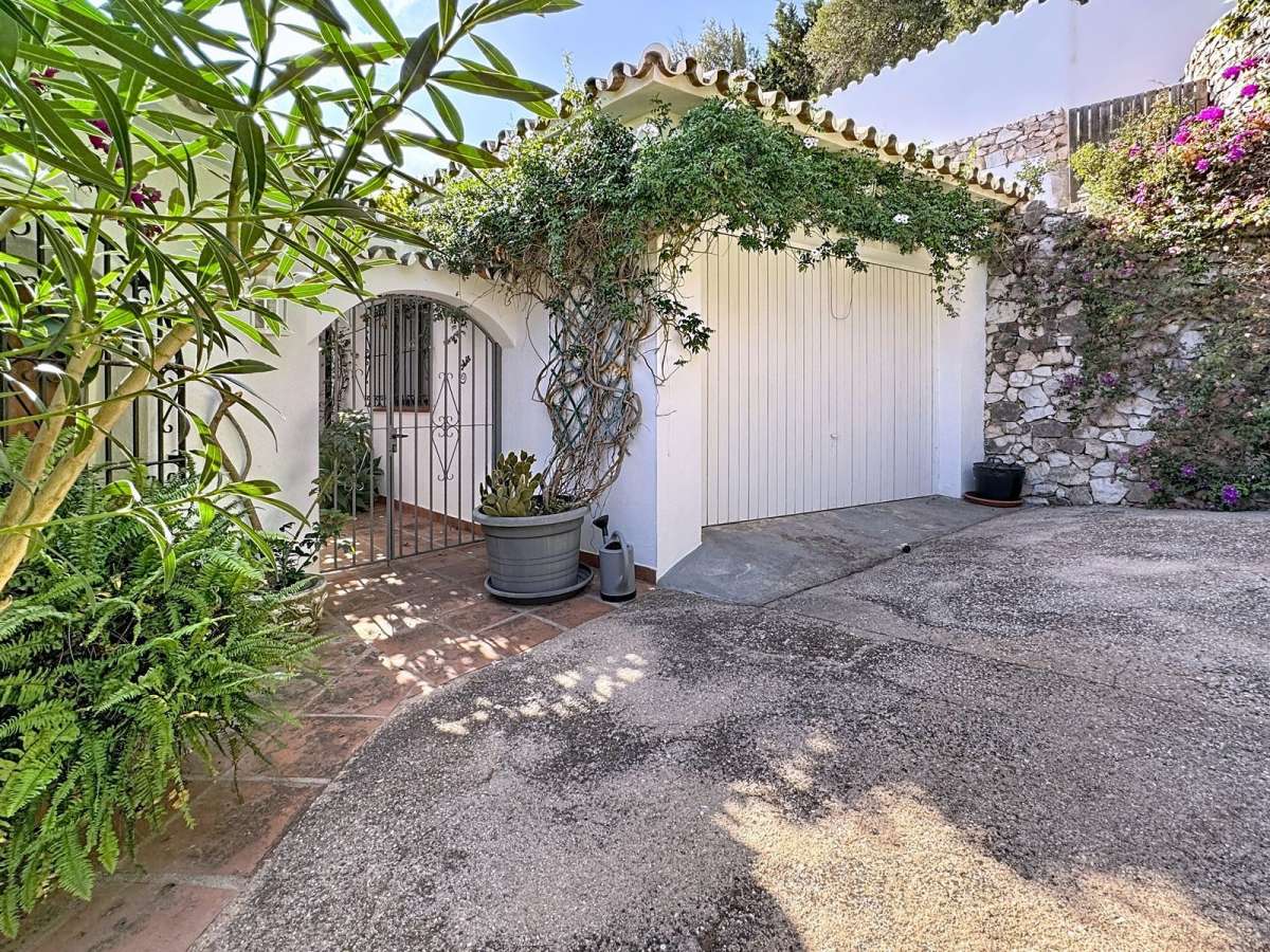 Outside, the villa is surrounded by greenery, charming stone walls, and several terraces that invite you to enjoy outdoor living. The pool area is private and beautifully set, offering panoramic sea and countryside views — a perfect blend of nature, comfort, and traditional Andalusian charm.