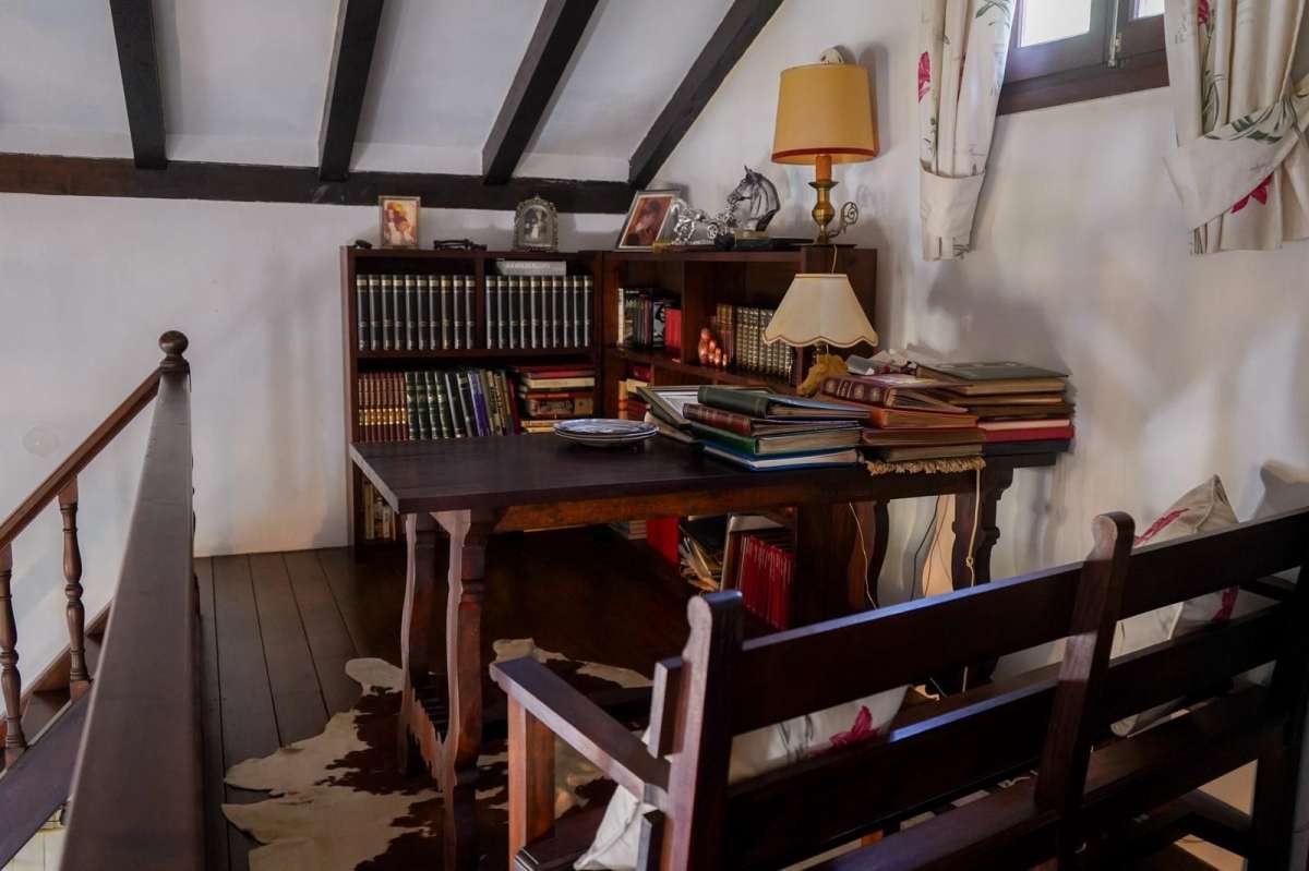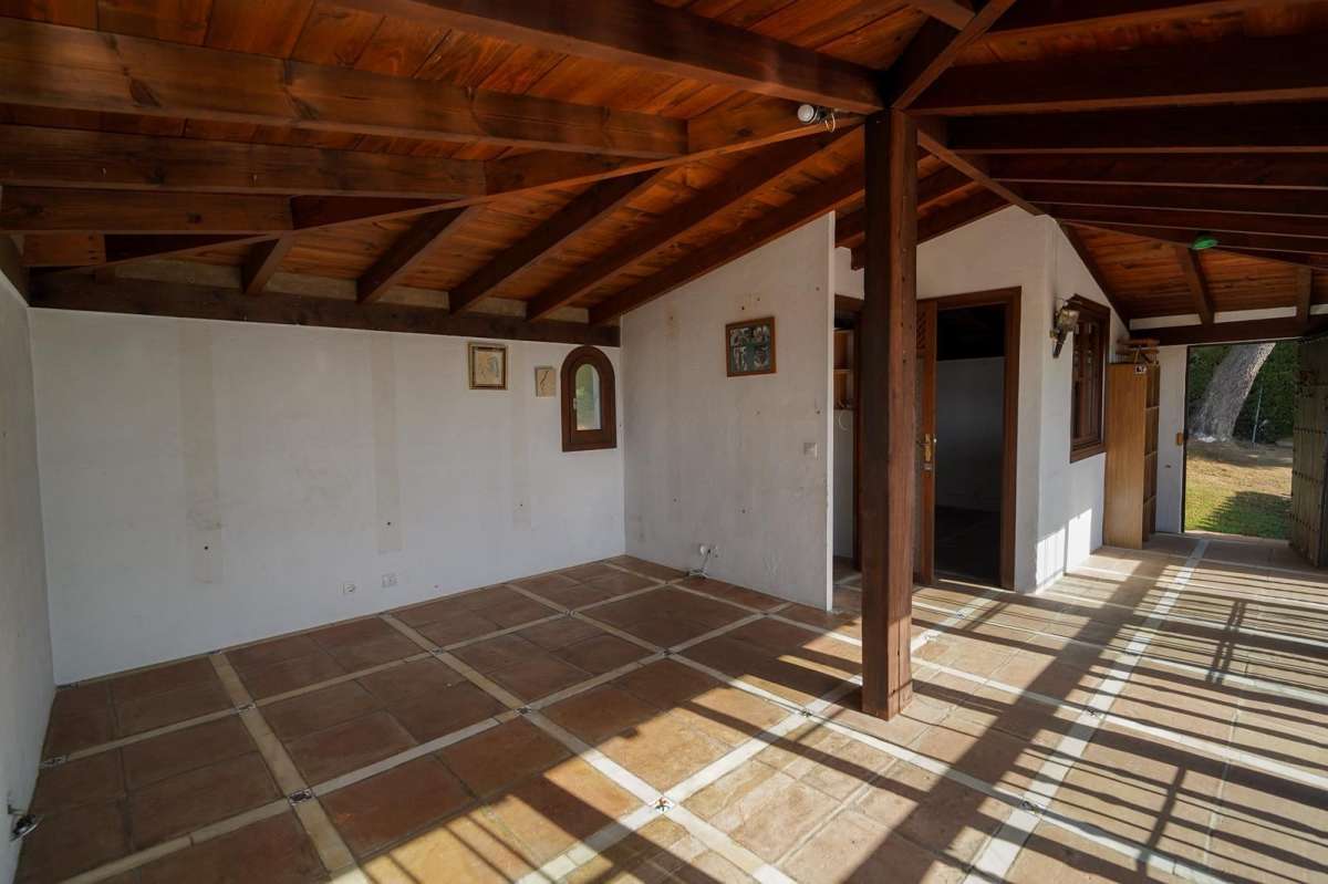 Inside, the villa showcases classic Spanish craftsmanship, with exposed wooden beams, intricate detailing, and a grand living room with vaulted ceilings and a cozy fireplace. Large windows and multiple terraces fill the home with natural light, creating a seamless connection between indoor and outdoor spaces.