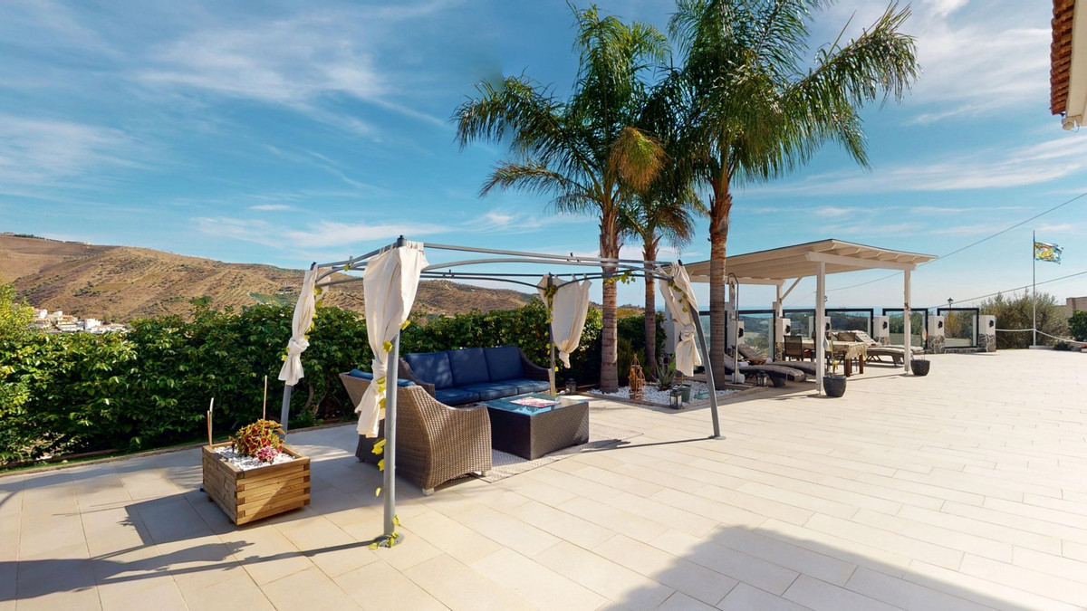 This charming villa in Moclinejo combines comfort, spaciousness and stunning views of the sea and the surrounding mountains. Located on a large plot with a beautiful garden, it offers a peaceful environment to fully enjoy nature and the Mediterranean climate. Outside we find a beautiful swimming pool, an outdoor bathroom and a summer kitchen, ideal for spending pleasant moments outdoors with family and friends. Inside, the villa stands out for its spacious layout: a large fully equipped independent kitchen, a bright and cozy living room, and a full bathroom. Another room is currently used as an office, but can easily be converted into an additional bedroom. The sleeping area has two bedrooms, another bathroom with bathtub and shower, and a master bedroom with direct access to the terrace and garden, as well as a large dressing room. The property offers convenient access, parking space within the plot and all essential amenities within walking distance. Thanks to its excellent orientation, enjoy natural light throughout the day and beautiful sunsets from the main terrace. In addition, its location is unbeatable: the beach is just 15 minutes away, the A7 motorway is 10 minutes away, and Malaga airport is approximately 30 minutes away, which guarantees an excellent connection with the entire Costa del Sol. An ideal home for those looking for charm, spacious outdoor areas and spectacular views in one of the most beautiful regions of the Axarquia. We would be happy to introduce you to this dream property soon, either in person or via a virtual tour. Because this world is unique, just like our Axarquía. In Andalusia. On the Costa del Sol. Here, on the sunny side of life.