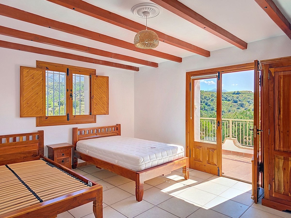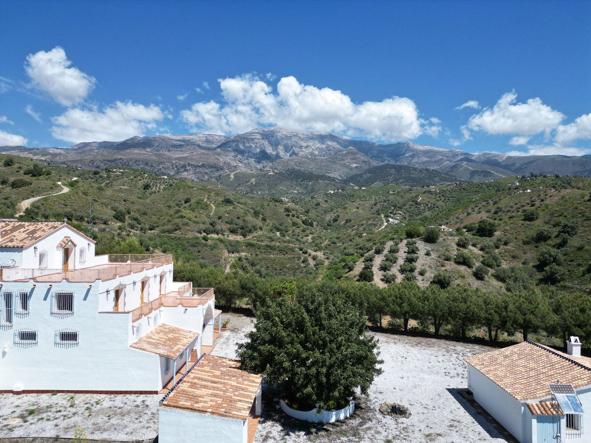 Below the main villa, a spacious garage with impressive custom-crafted wooden doors provides ample space for multiple vehicles or can easily be transformed into a workshop, gym, art studio, or even four additional bedrooms. Around the villa, nearly 100 m² of terraces and sun-drenched solariums capture spectacular panoramic views of the Sierra de Almijara mountains.