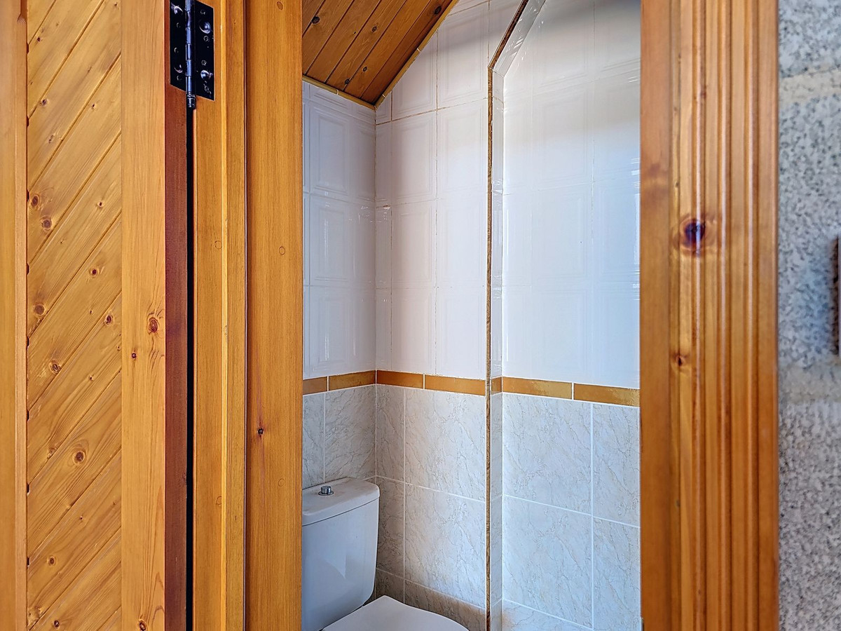 The main residence offers three generous bedrooms, each with its own ensuite bathroom and direct terrace access, allowing seamless indoor-outdoor living. The open-plan living area flows naturally to the upper terrace — the perfect space for entertaining or simply relaxing while enjoying the ever-changing mountain landscape.