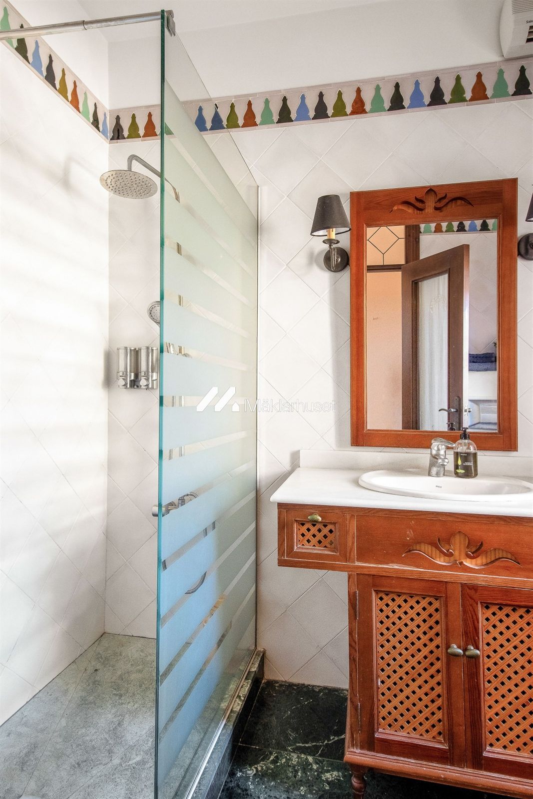 The main floor of the villa impresses with a spacious living room and an open-plan kitchen, where large windows let in natural light and frame the magnificent sea views. From here, you also have direct access to one of several terraces, providing an idyllic setting for relaxation or dining under the stars.