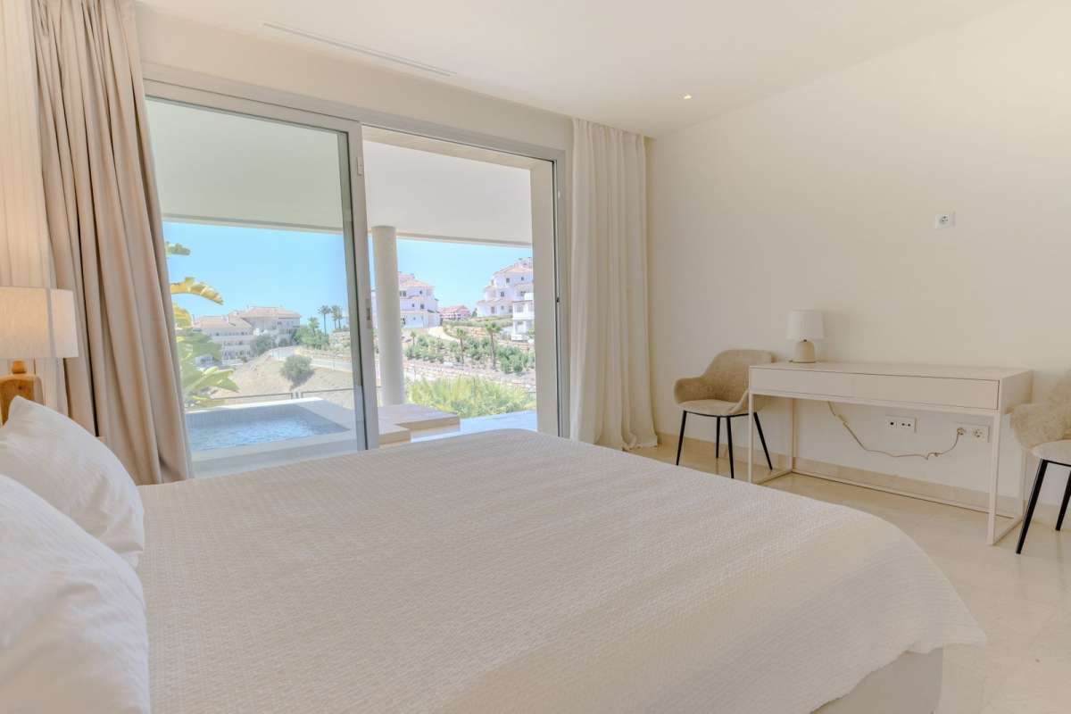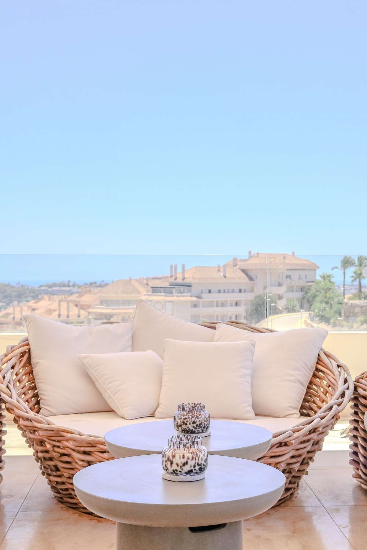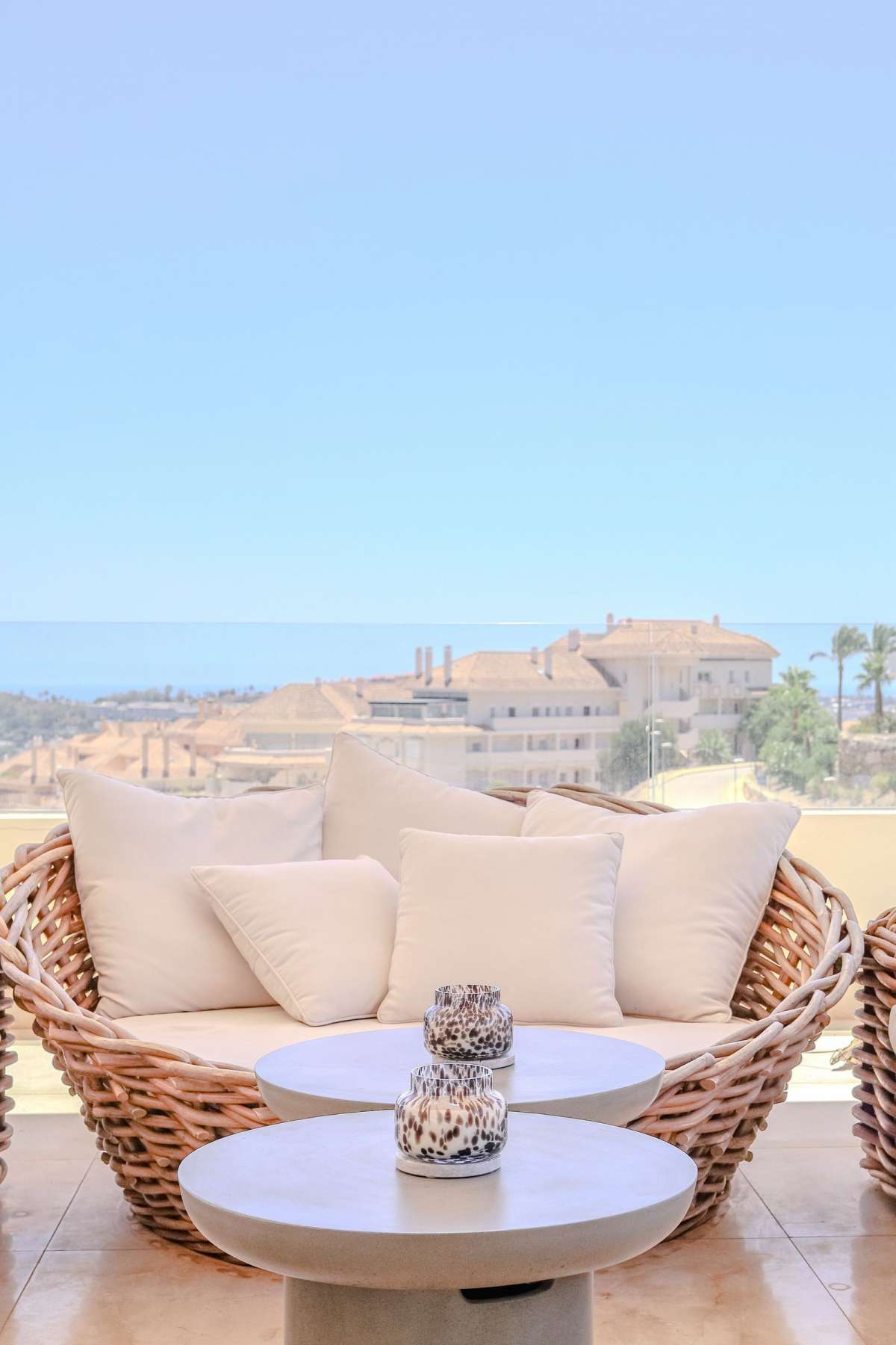 If you seek a truly luxurious and special residence, this apartment is an outstanding choice. Exuding high class, elegance, and top-quality materials and finishes, it promises not to disappoint. Situated in the highly desirable Nueva Andalucía area of Marbella, it offers a tranquil oasis with stunning open views to the sea, while still being just minutes from all the amenities of Nueva Andalucía and Puerto Banus.It features 4 bedrooms and 4 bathrooms plus a guest toilet. Its south-west orientation ensures maximum sunlight, making the home very bright and light. Upon entering, an entrance hall with a guest toilet and storage is on the left, while to the right is a guest bedroom with an en-suite bathroom and terrace access. Straight ahead is the spacious open-plan kitchen, dining area, and living room, characterized by floor-to-ceiling glass doors that provide a seamless indoor/outdoor living experience. The gorgeous terrace offers breathtaking mountain and sea views, ideal for morning coffee or dinners with loved ones.On the ground floor, there are two additional guest bedrooms and the master bedroom, all with en-suite bathrooms. The master and guest bedrooms have access to a covered terrace, plunge pool, and private garden, giving the apartment the feel of a private house.The privileged location is near Lago de Las Tortugas, with golf courses such as Real Club de Golf Las Brisas, Los Naranjos Golf Club, and Aloha Golf Club nearby. This area is not only a golfer’s paradise but also offers all the amenities needed for an exceptional lifestyle, including restaurants, bars, sporting facilities, and supermarkets.This brand new luxury apartment offers an elegant contemporary vibe, exceptional design, and breathtaking panoramic views. Available until june or for longer after after dialogue and request. Get in touch with us today, this is a must-see property!