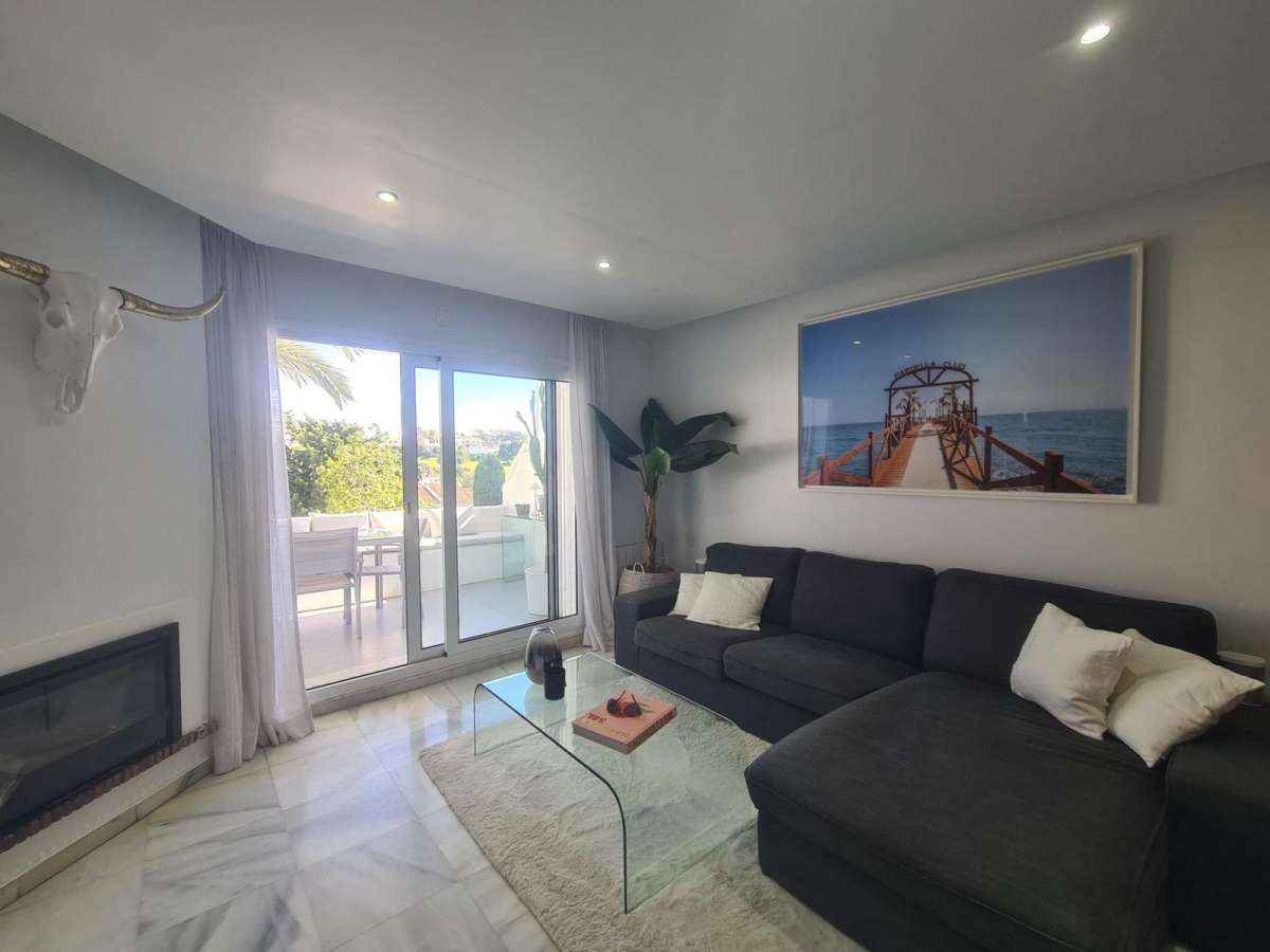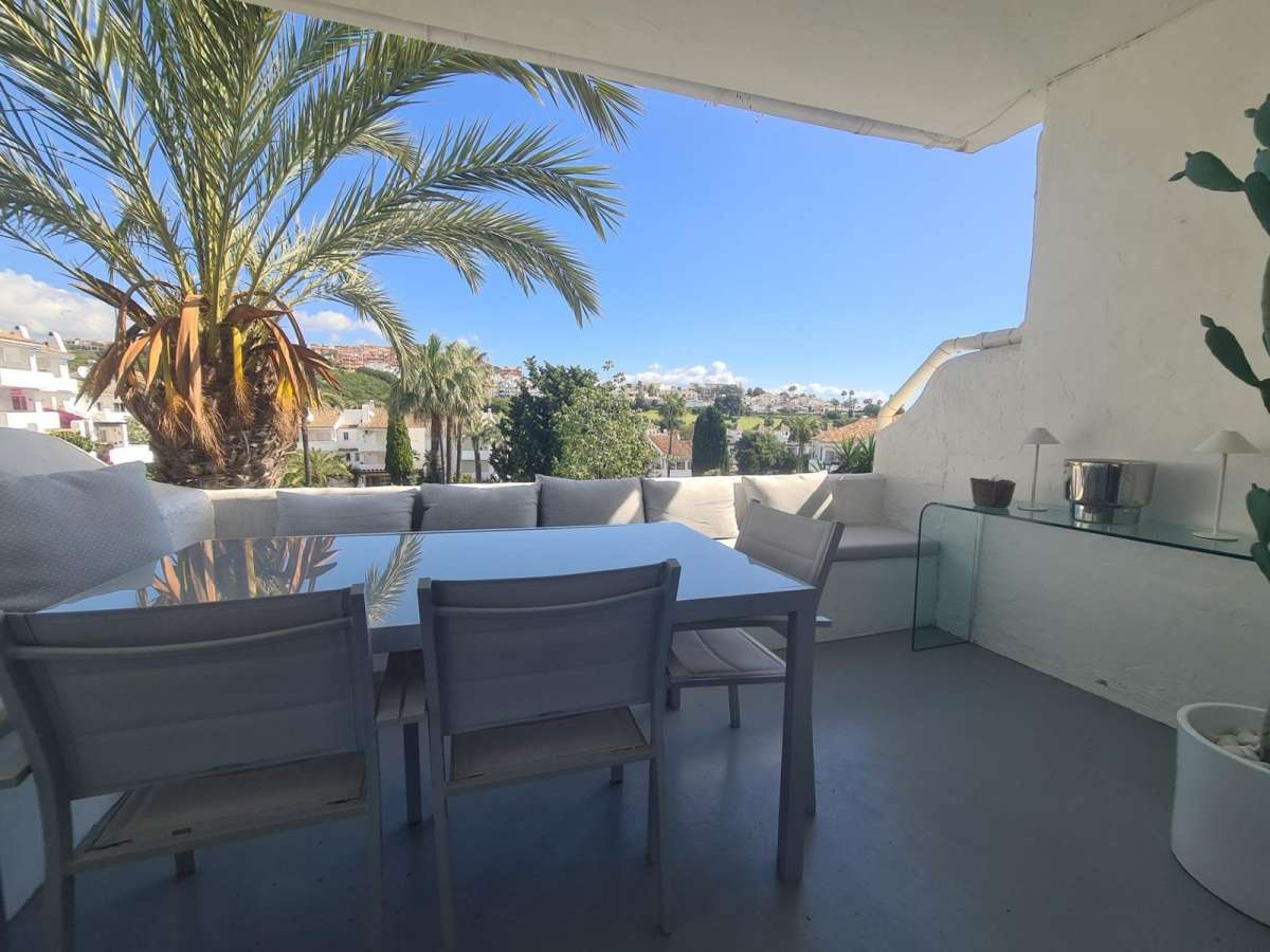 Located in the picturesque Pueblo Camelot urbanisation in Manilva, this fully renovated apartment offers a peaceful lifestyle just minutes from the beach and the vibrant La Duquesa marina.