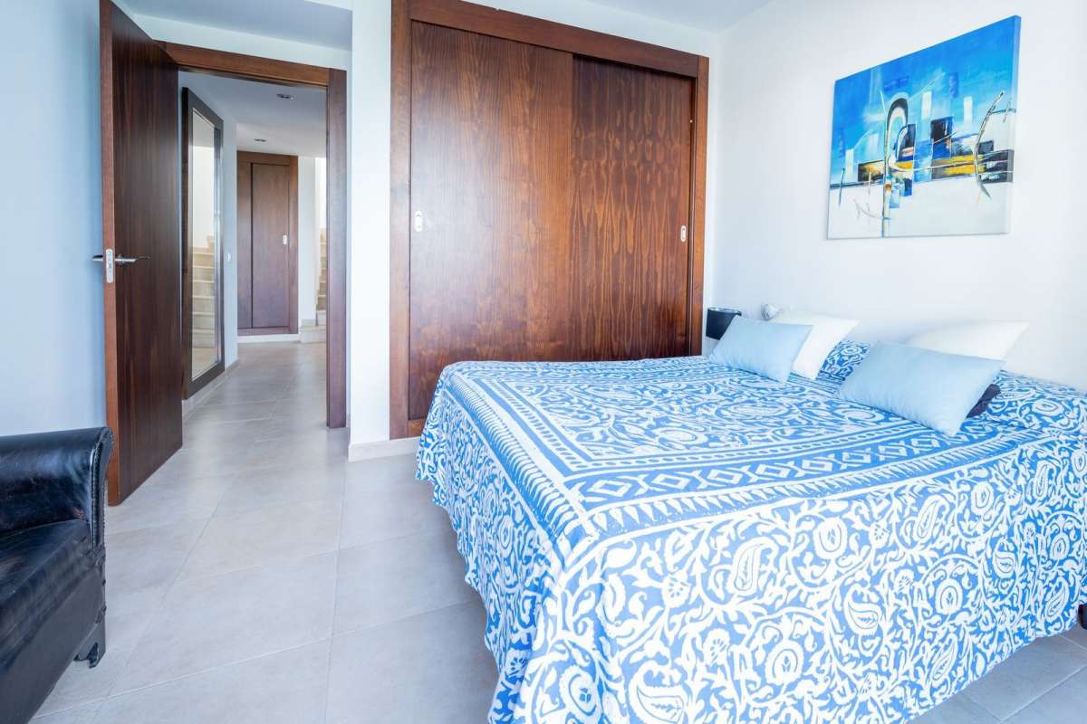 Upper Level: Master bedroom suite with ensuite bathroom and private terrace offering spectacular sea and mountain views.