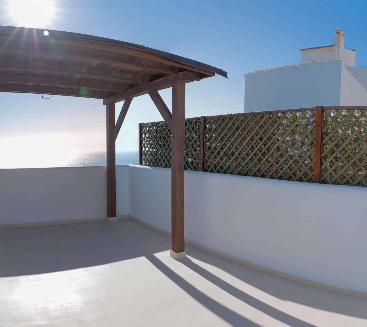 The views from the terrace are truly spectacular, offering panoramic views of the sea and mountains, as well as the communal swimming pool and interior courtyard. The covered terrace provides a sheltered space to enjoy the outdoors all year round.