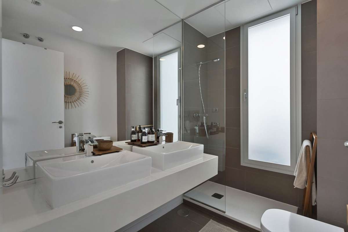 Upon entering the penthouse, you are greeted by an open-plan kitchen and living room, which lead directly to the first terrace. This level also features two well-appointed bedrooms and a modern bathroom, ensuring comfort and convenience for family and guests.
