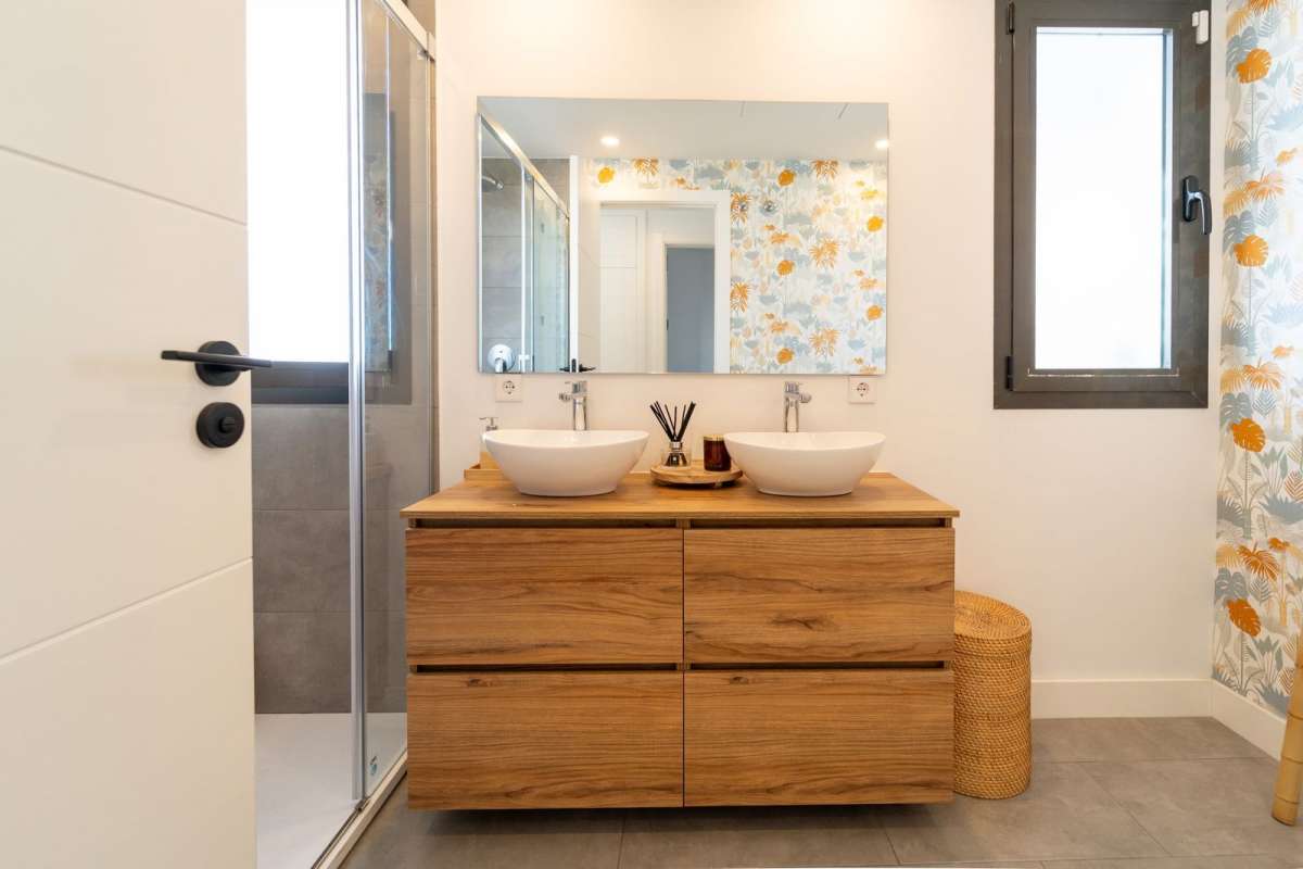 On the main floor, you’ll find a fully equipped independent kitchen, a bright and spacious living-dining room with direct access to a lovely terrace, perfect for relaxing and enjoying the Mediterranean climate. This level also features a spacious bedroom with fitted wardrobes and a full independent bathroom, ideal for guests or everyday use.