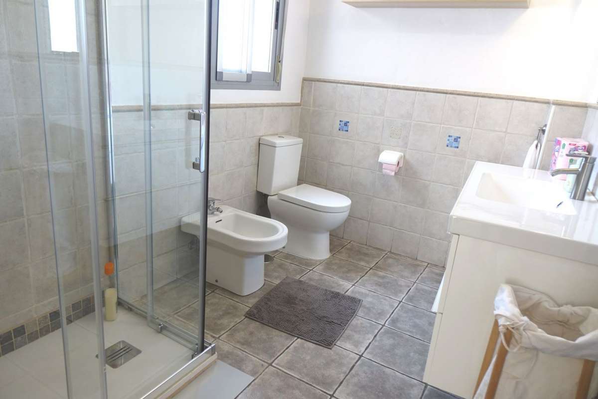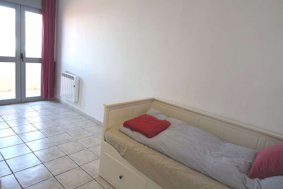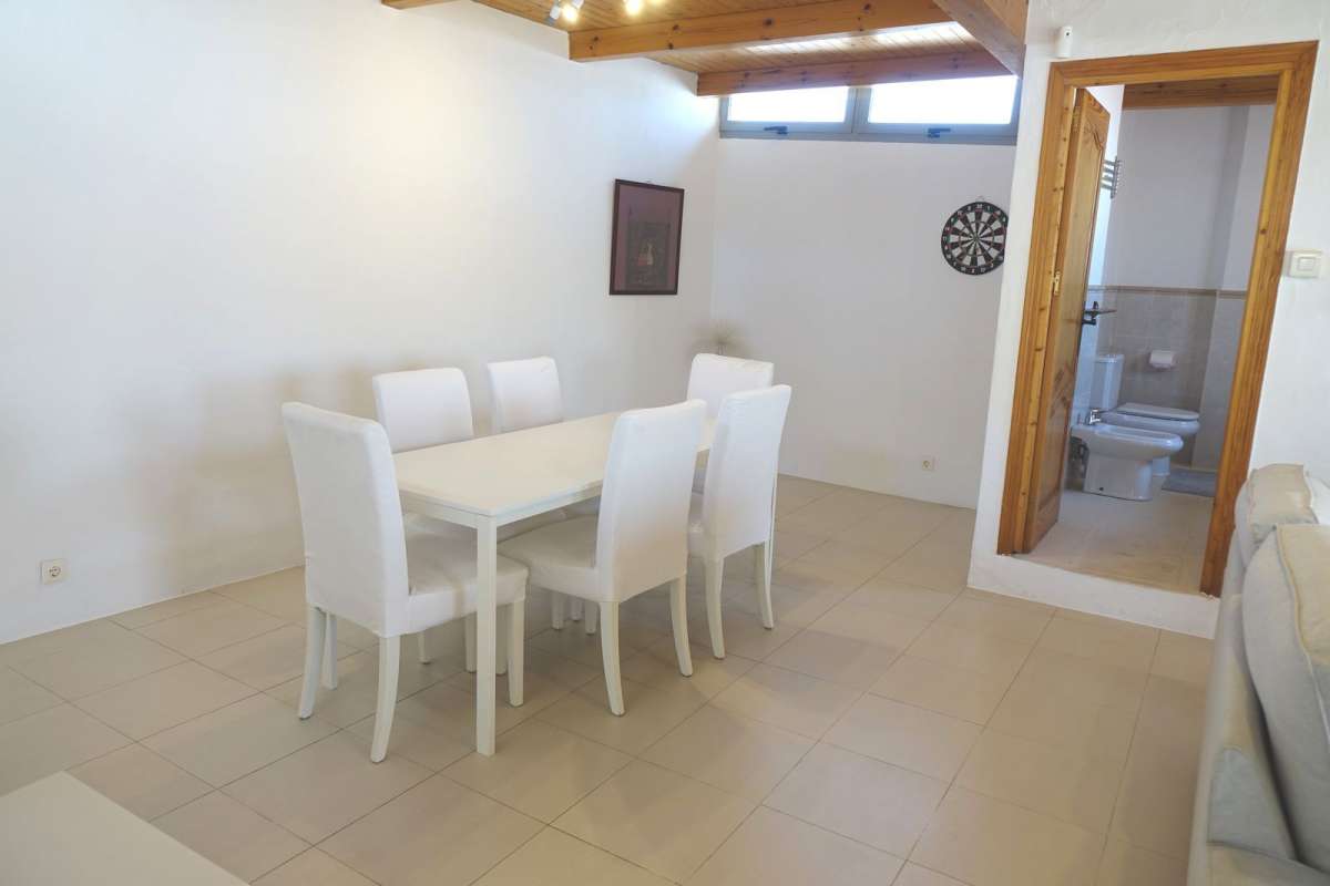 The upper level is dedicated to a bright, open-plan living space that flows seamlessly onto a sunny, uncovered terrace—ideal for al fresco dining or relaxing under the Mediterranean sky. This level also includes a second bathroom for added comfort.