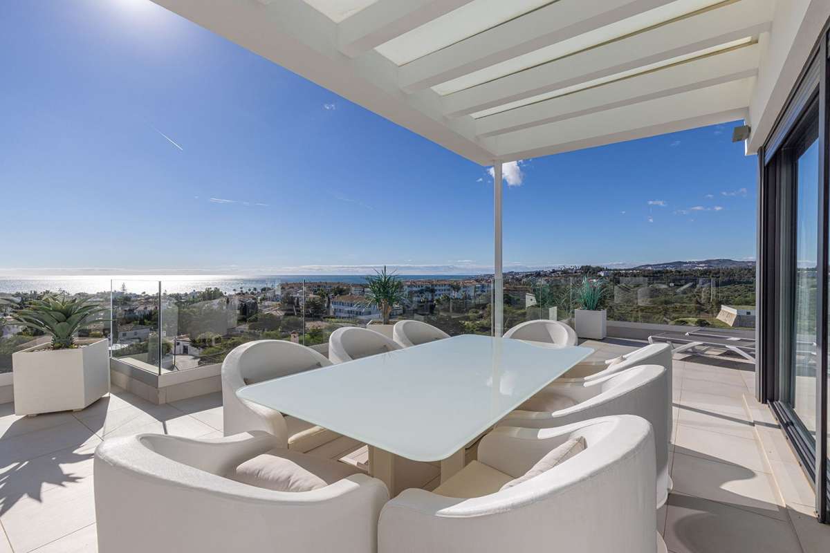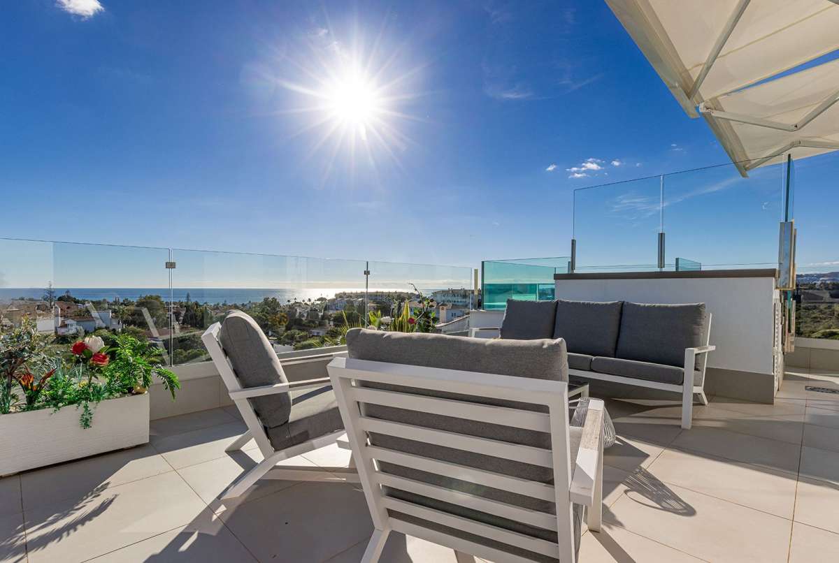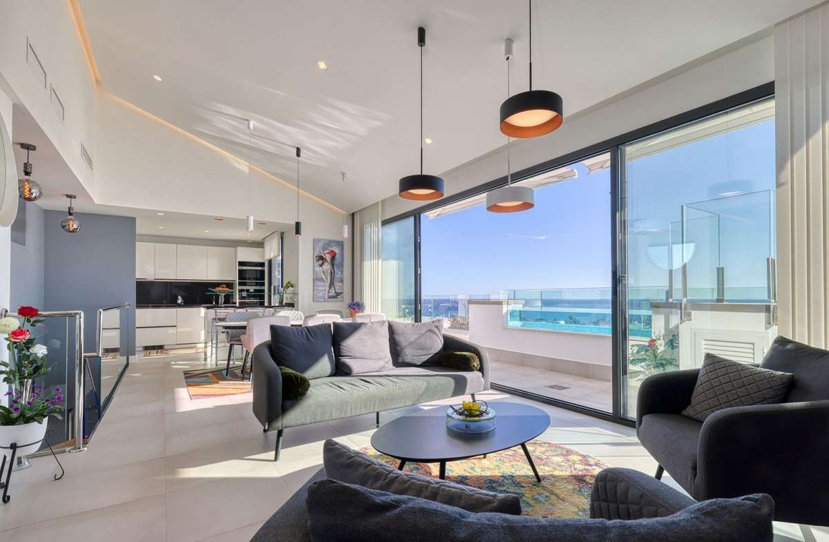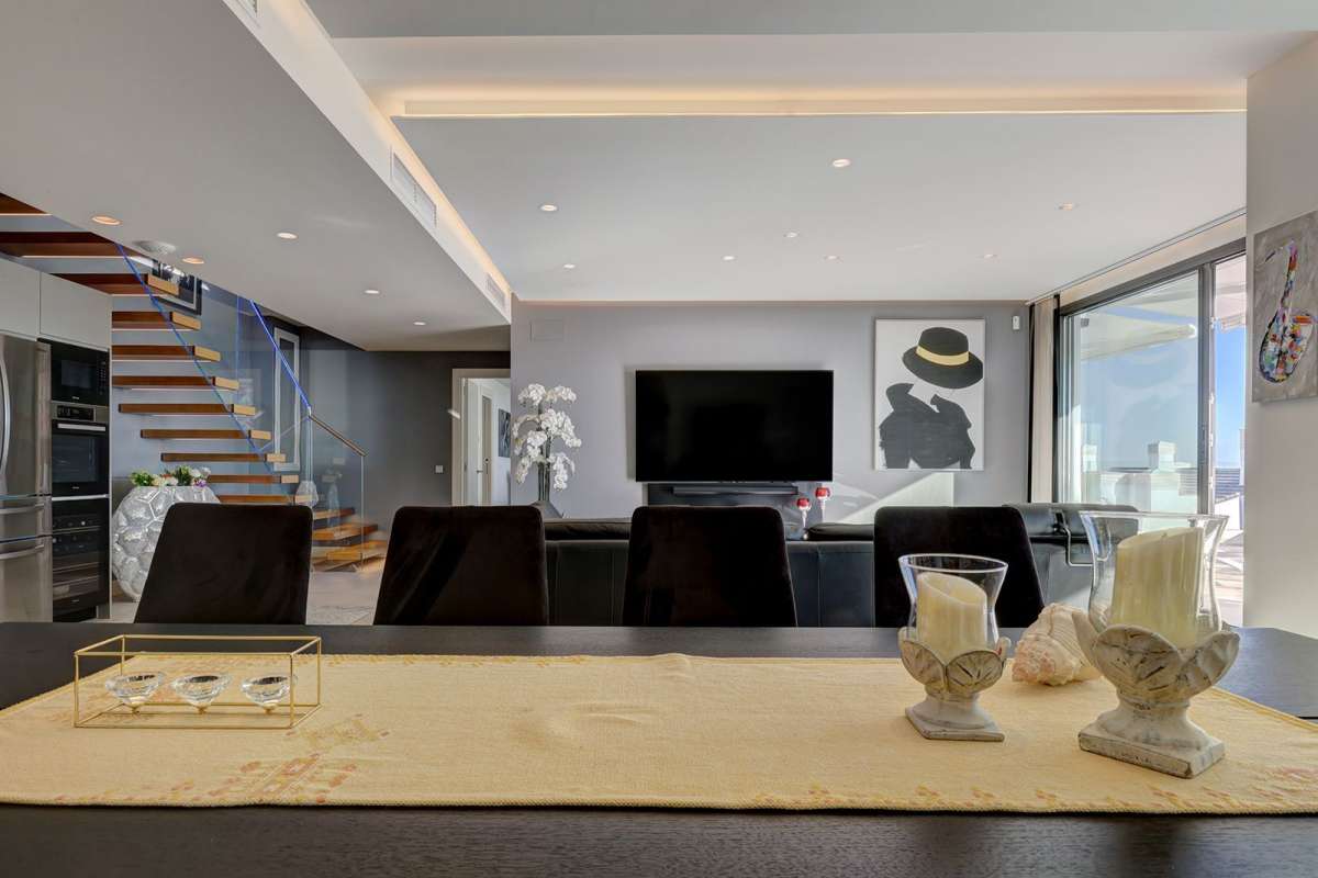 Exclusive 5-Bedroom Duplex Penthouse in Mijas Costa with Unbeatable Views This one-of-a-kind 5-bedroom duplex penthouse in Santa Barbara Heights, Mijas Costa, offers an unparalleled lifestyle of luxury and exclusivity. Spanning over three apartments seamlessly merged into a single expansive property, this home provides breathtaking panoramic views, stretching from the snow-capped Sierra Nevada mountains to the coastlines of Africa and Gibraltar. Situated in the most coveted block, it’s walking distance to the beach, making it the ultimate retreat in the Costa del Sol. Boasting over 300m² of refined internal living space and an additional 350m² of terraces, this penthouse redefines contemporary living. Each of the five bedrooms has panoramic views and feature en-suite bathrooms with high-end hydro-massage showers and jetted baths. The property is equipped with over €250,000 in custom upgrades, including two bespoke kitchens with Miele appliances, underfloor heating, a full domotic home automation system, and an elegant Italian staircase. The duplex layout includes two private plunge pools, a spacious jacuzzi, and separate living areas on each floor with open-plan kitchens, perfect for entertaining or multi-generational living. Residents of this penthouse enjoy access to resort-style amenities, including optional luxury hotel services such as private chefs, in-apartment beauty treatments, and daily maid service. The gated community offers exceptional facilities like a heated lap pool, a sauna, a Turkish bath, tennis courts, and year-round entertainment. With four parking spaces (convertible into private garages) and three storage rooms, this property combines sophistication, convenience, and the best views in Mijas Costa. Bullet Point Summary Location: Santa Barbara Heights, Mijas Costa, walking distance to the beach. Views: Panoramic vistas from Sierra Nevada to Africa and Gibraltar. Layout: 5 en-suite bedrooms, over 300m² interior space + 350m² terraces. Luxury Features: Hydro-massage showers, jetted baths, underfloor heating. Outdoor Spaces: Two private plunge pools, a jacuzzi, and expansive terraces. Custom Upgrades: €250,000 invested, including Miele kitchens and home automation. Resort Amenities: Heated lap pool, sauna, Turkish bath, tennis courts, and more. Convenience: Four parking spaces with garage potential and three storage rooms.
