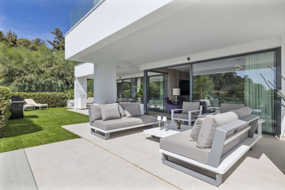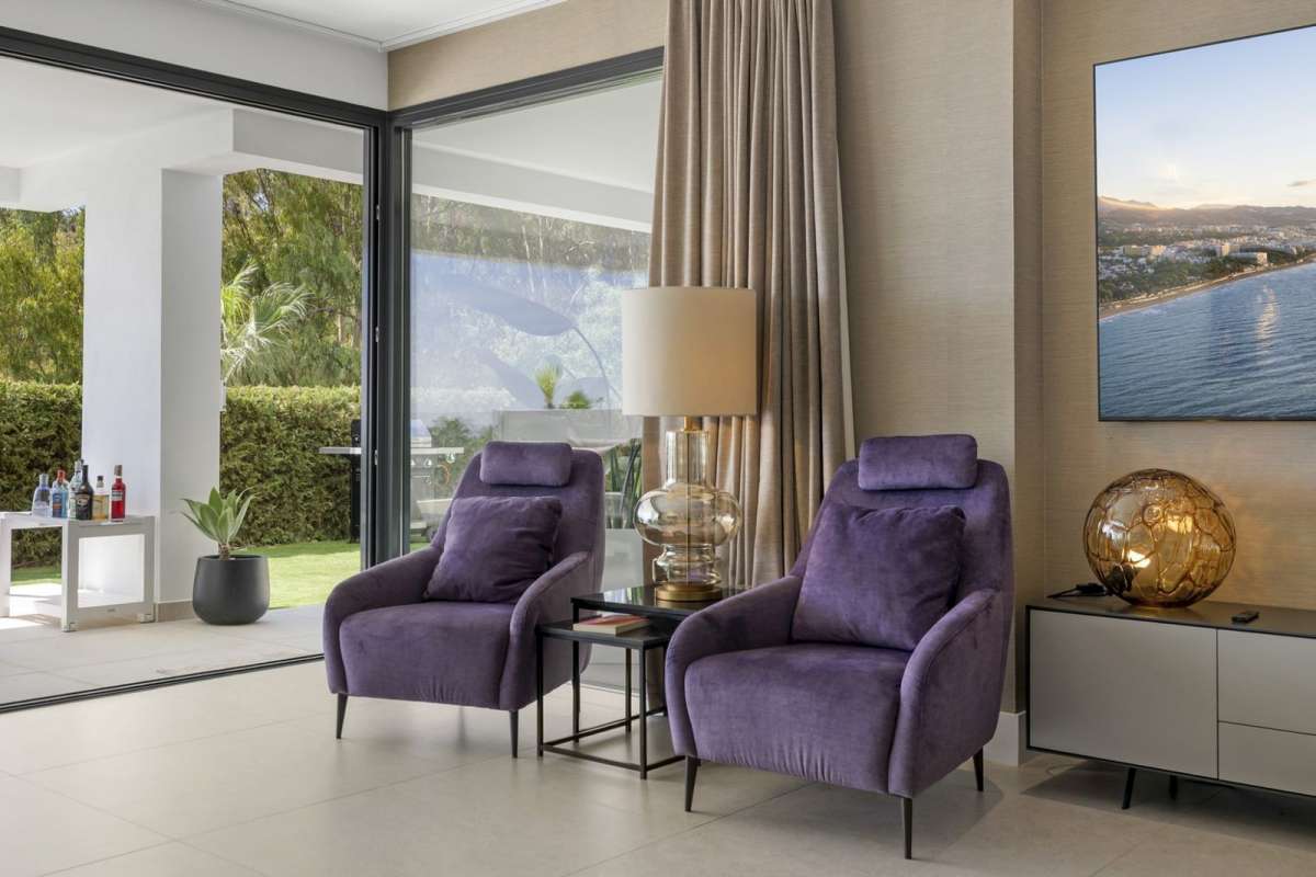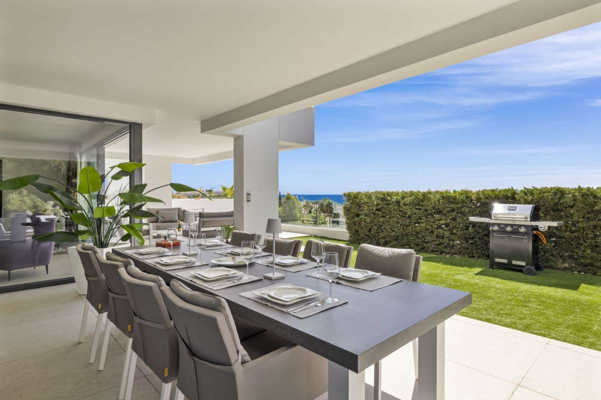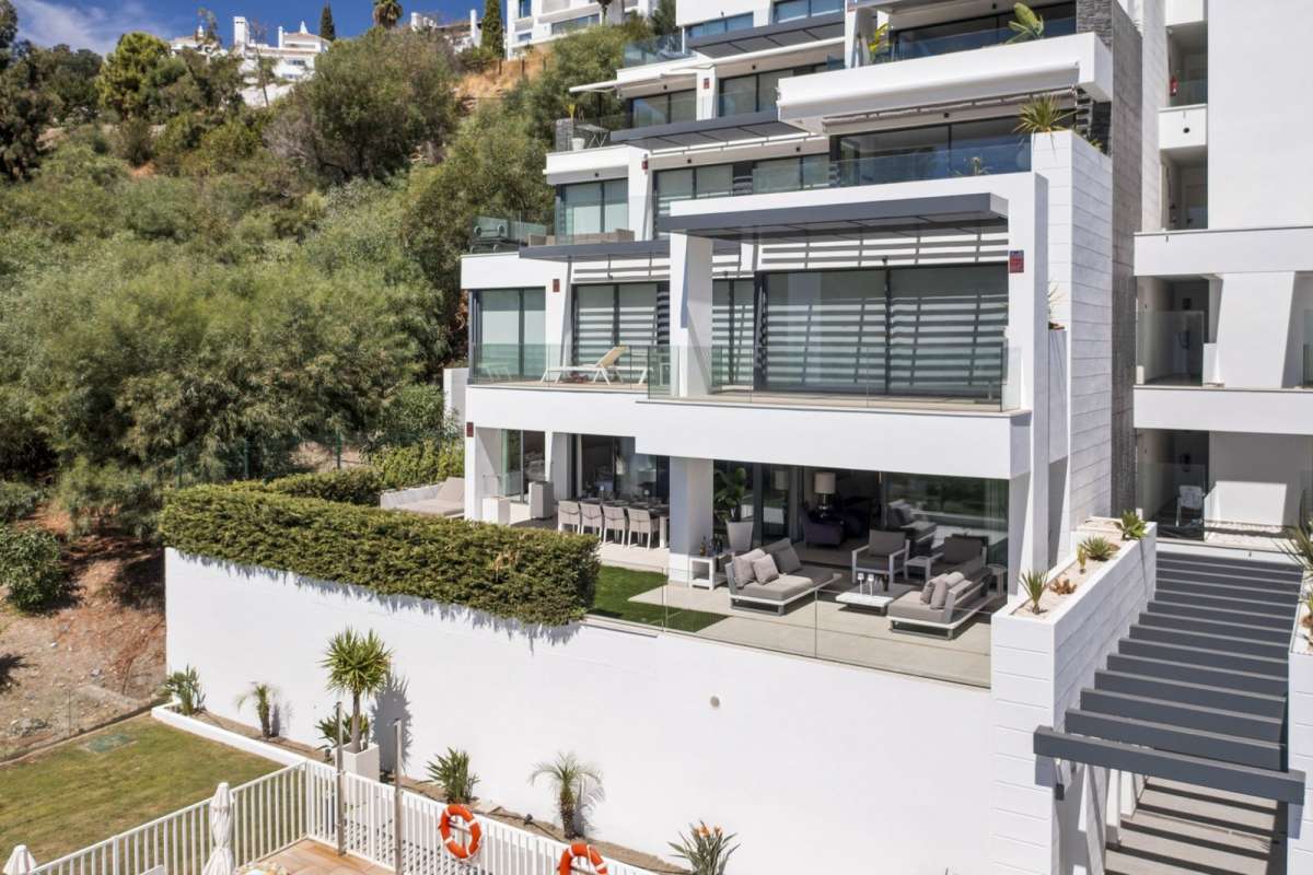 The luxurious 3-bedroom ground floor apartment is located in Aqualina residences with a south-facing orientation and views of the swimming pool and the sea and offers the latest technology and design. High quality and finish make this apartment a whole, using only the best materials. If you are looking for a luxurious, contemporary, modern flat in the heart of one of the best postcodes on the Costa del Sol, this flat is the perfect choice.