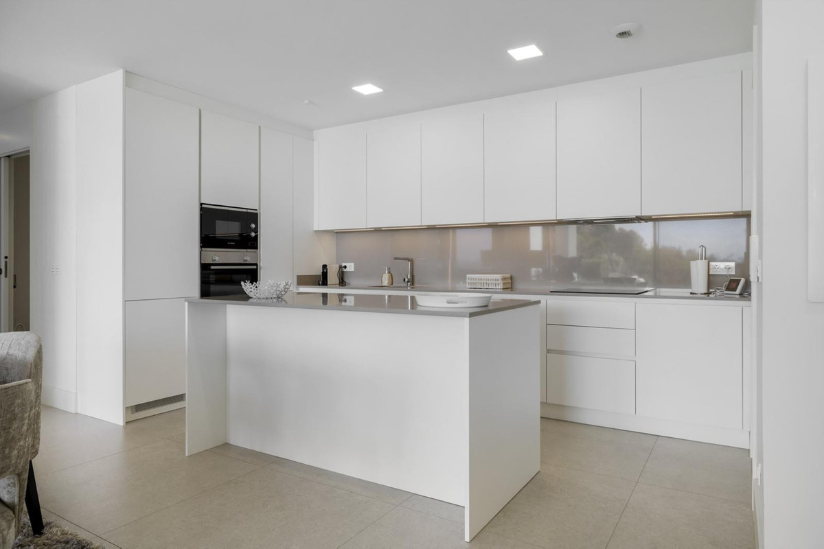 There are 3 bedrooms with 2 bathrooms, the master bedroom being en suite. A bright and spacious open-plan kitchen that is both modern and neutral in tone and allows natural light to flood in. All bedrooms are equipped with high-quality wardrobes and lead out to a spacious 60 m² terrace and a spacious 77 m² garden that enjoys a lot of privacy as it is a corner apartment.